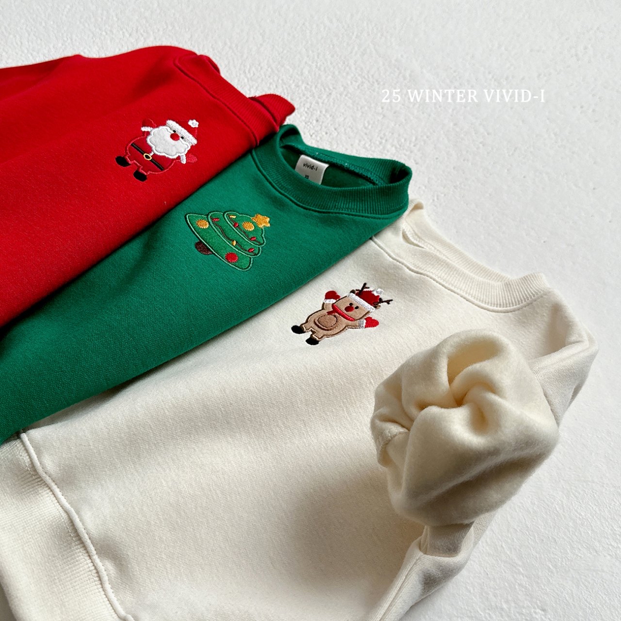 ❄️預訂 韓國直送❄️🇰🇷VIVIDI三色聖誕貼花刺繡拉絨衛衣