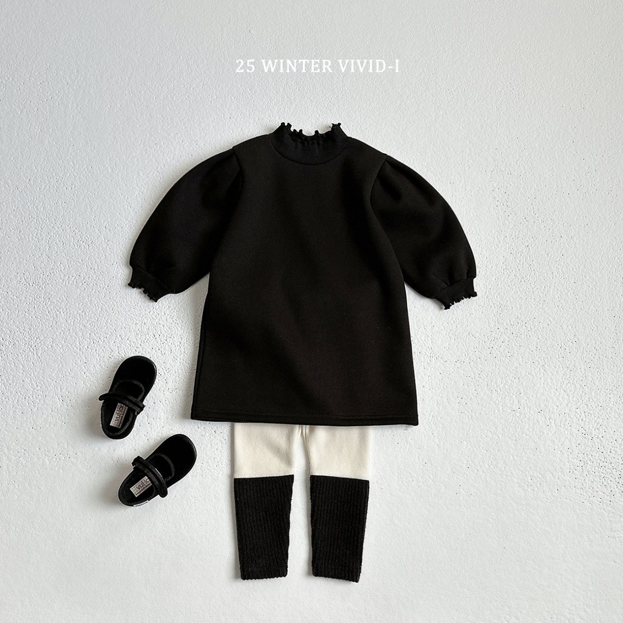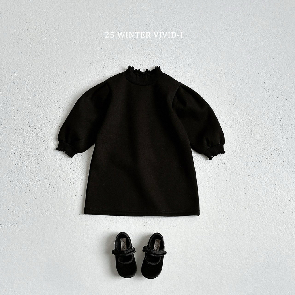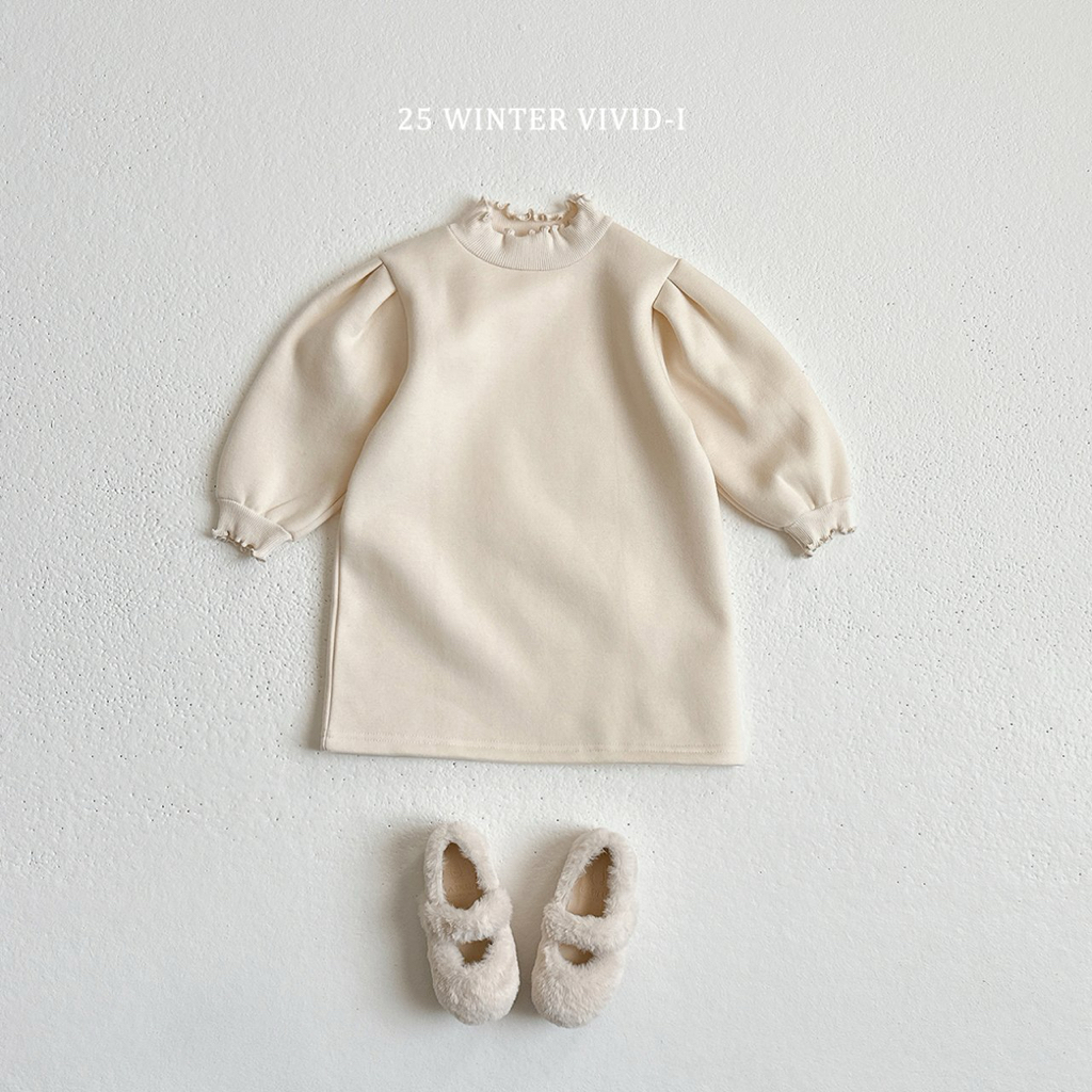 ❄️預訂 韓國直送❄️🇰🇷VIVIDI三色花邊半高領拉絨泡泡袖連身裙