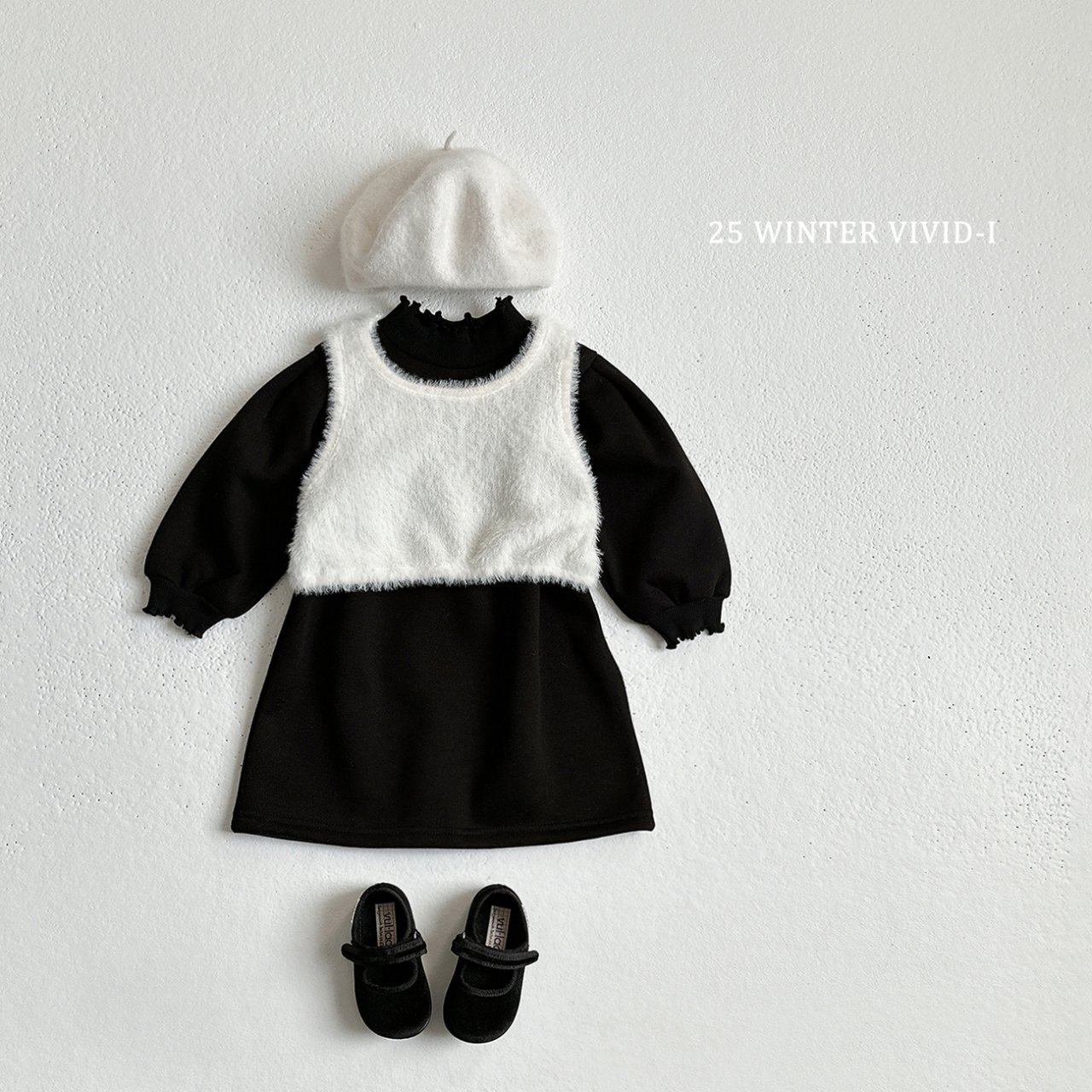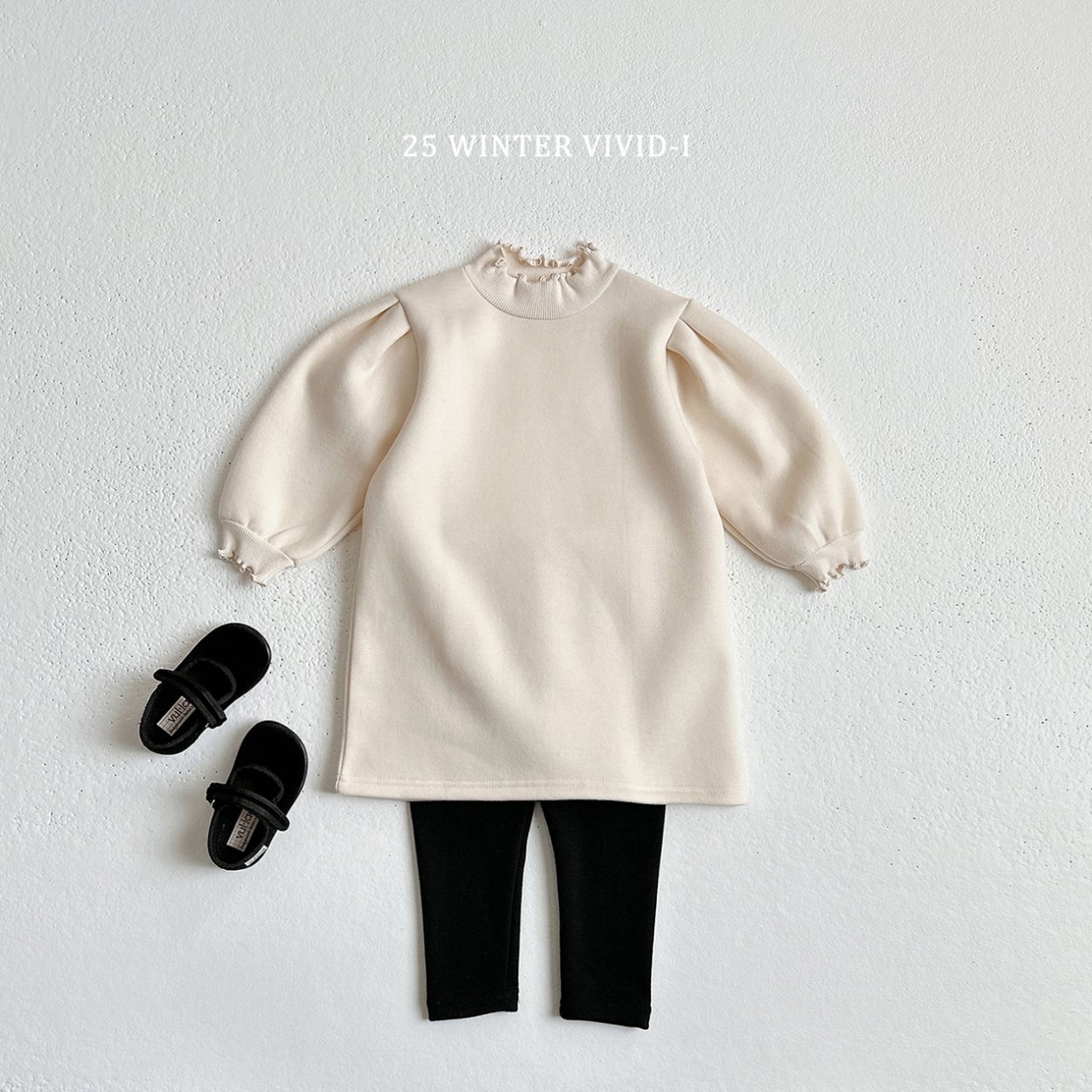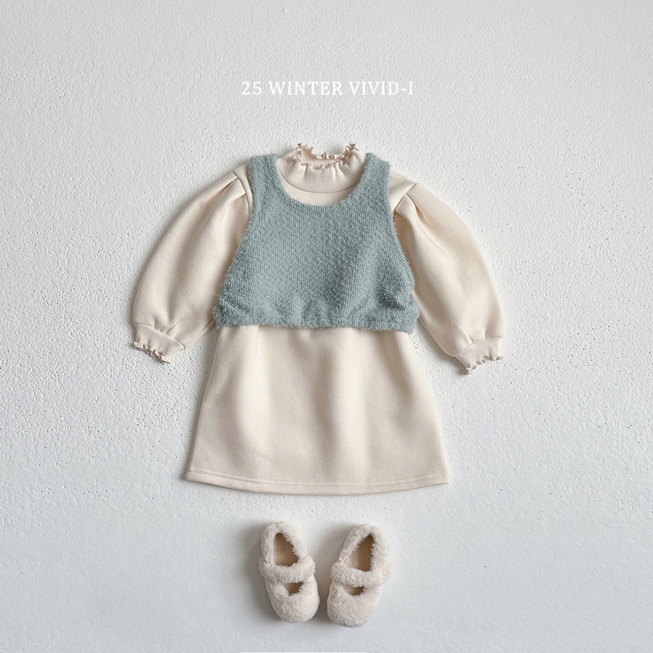 ❄️預訂 韓國直送❄️🇰🇷VIVIDI三色花邊半高領拉絨泡泡袖連身裙