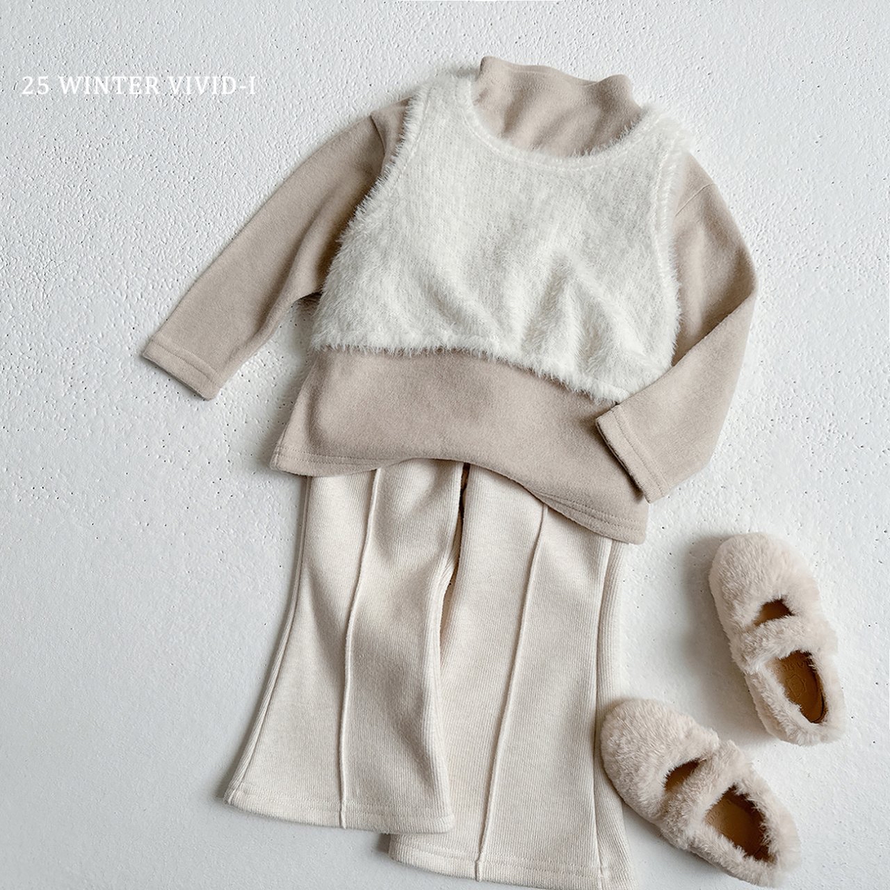 ❄️預訂 韓國直送❄️🇰🇷VIVIDI兩色摺邊絨毛針織喇叭褲