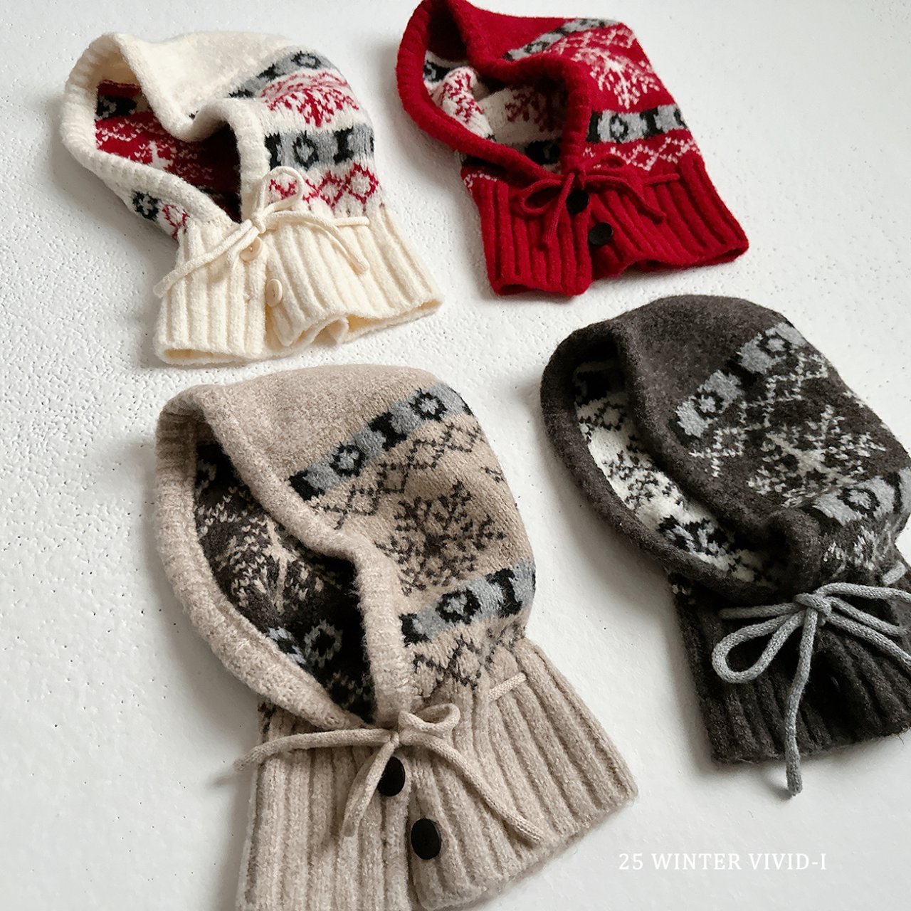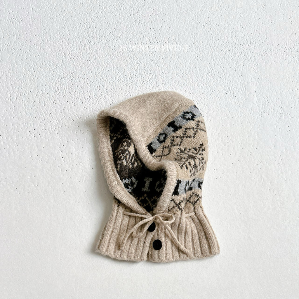 ❄️預訂 韓國直送❄️🇰🇷VIVIDI四色北歐風雪花圖案鈕扣綁帶包耳帽