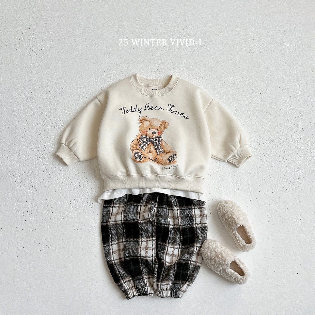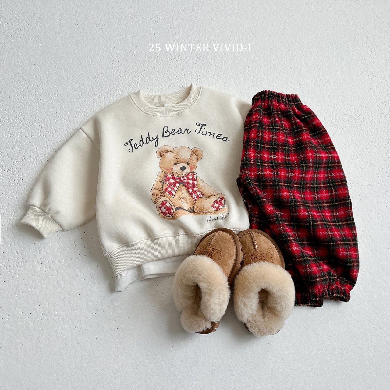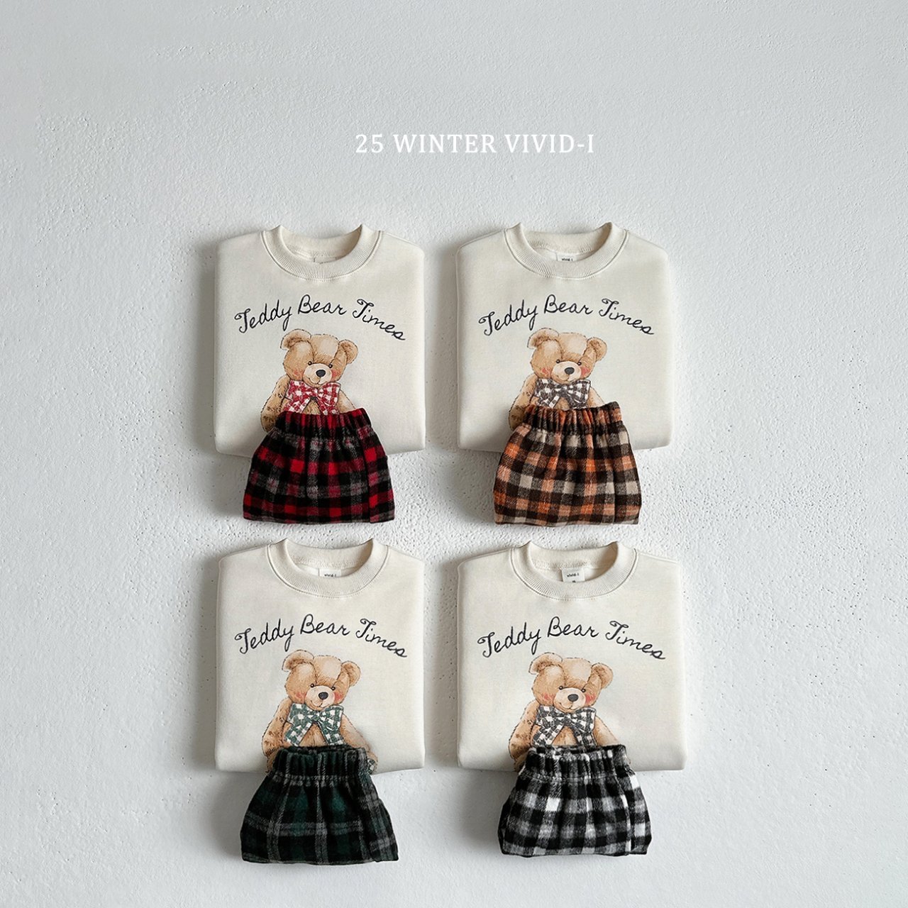 ❄️預訂 韓國直送❄️🇰🇷VIVIDI四色小熊印花格紋拉絨衛衣上下套裝