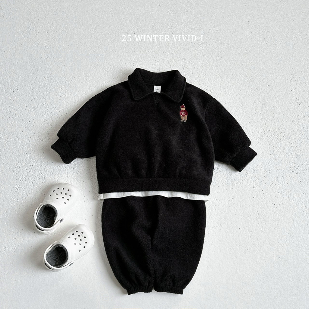 ❄️預訂 韓國直送❄️🇰🇷VIVIDI四色標誌性小熊刺繡拉絨企領衛衣上下套裝