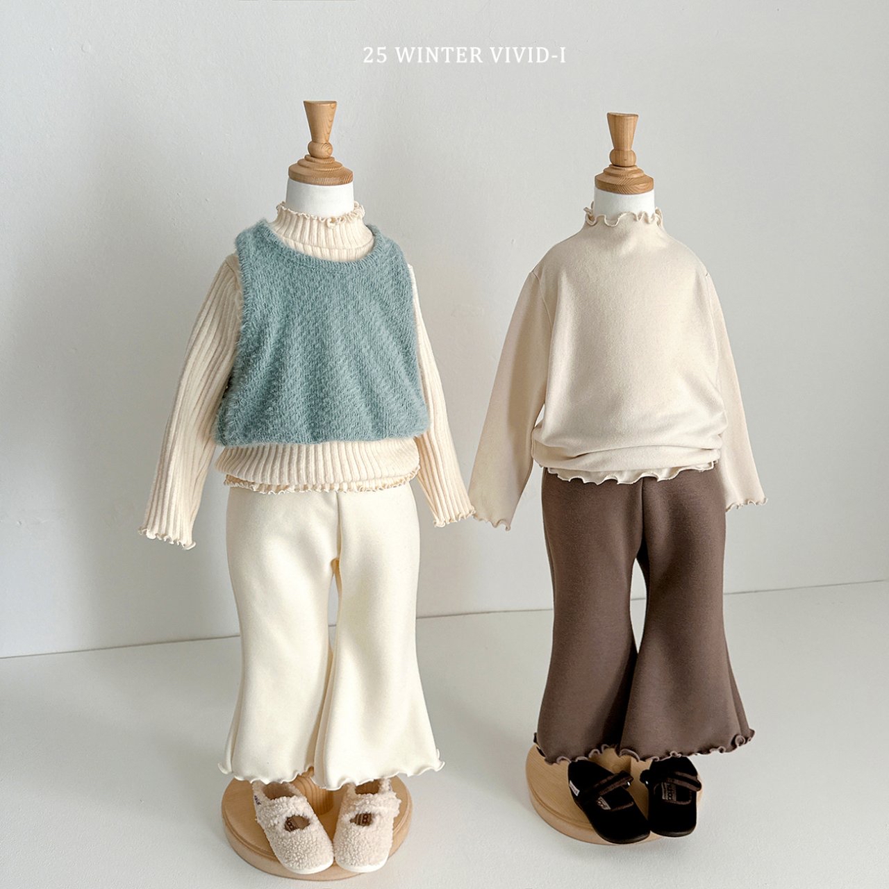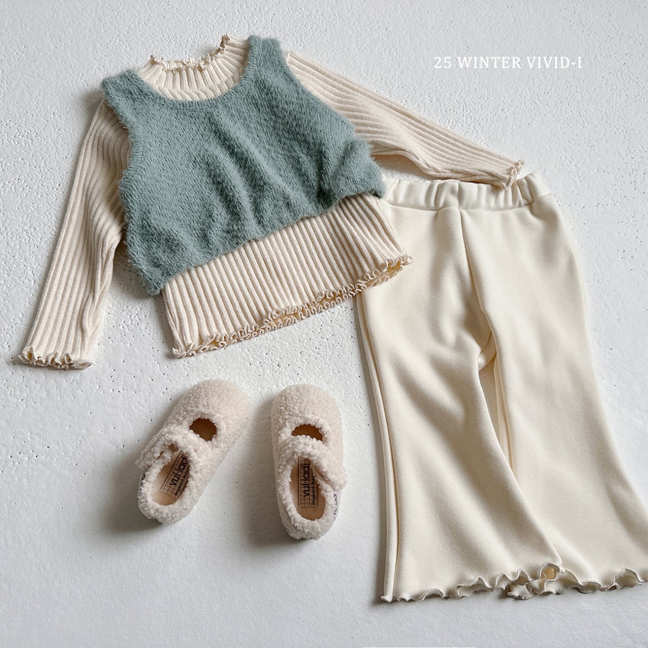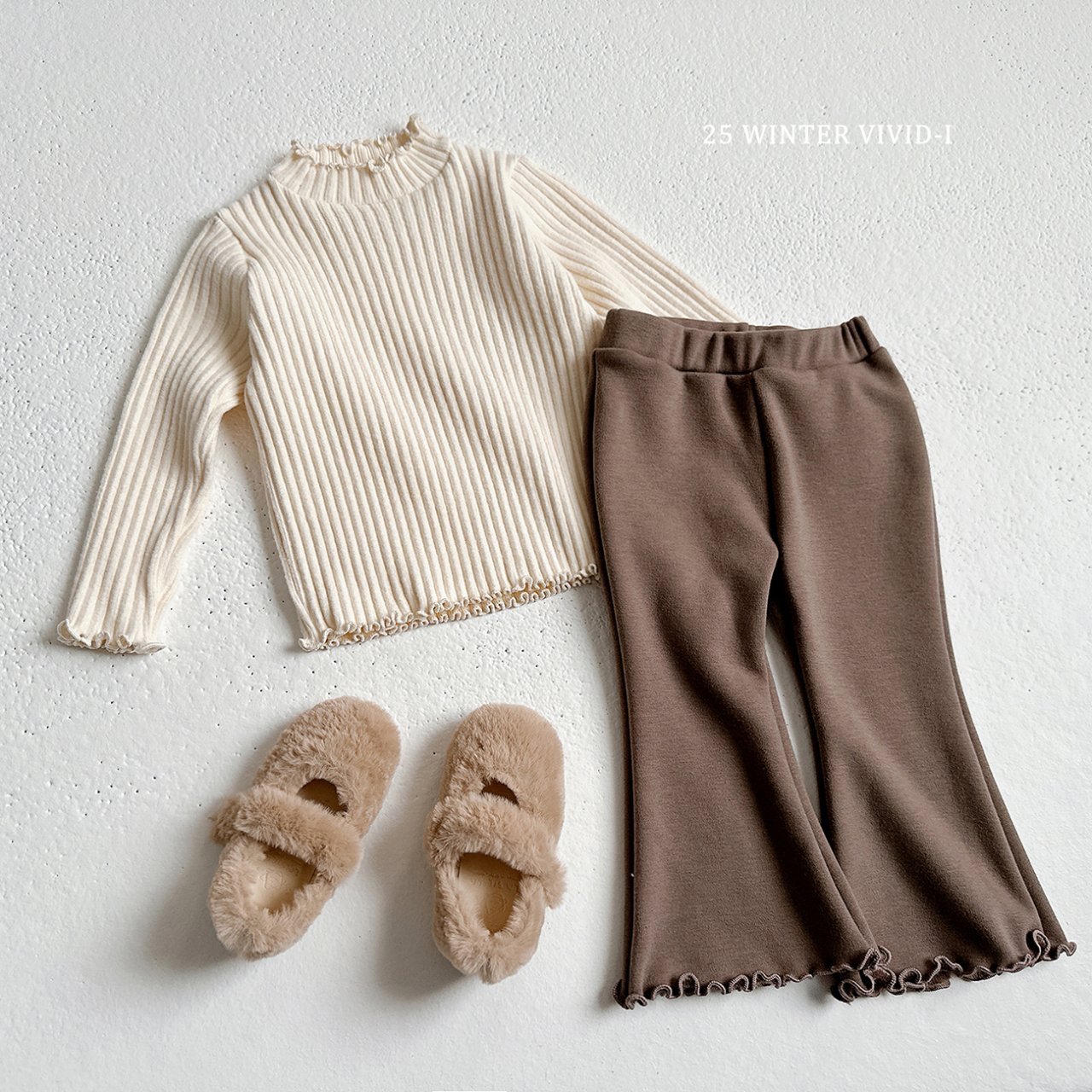❄️預訂 韓國直送❄️🇰🇷VIVIDI四色純色花邊絨毛喇叭褲