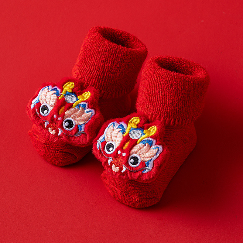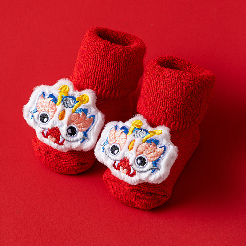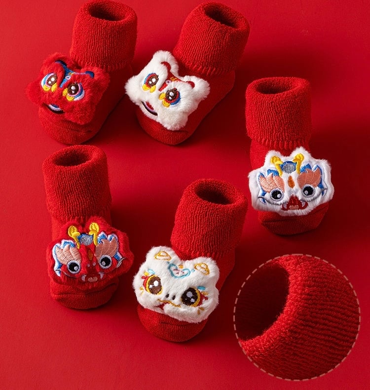 🧨新年款預訂🧨嬰幼兒加厚保暖防滑襪 🚚預計貨期:付款後約7~14個工作天到貨 (貨期有機會提早或延遲 視乎廠單生產及出貨時間) 🎀款式:白龍|白蛇|白醒獅|紅龍|紅醒獅 📐尺寸:S碼 建議0-1歲 腳長9-11cm M碼 建議1-3歲 腳長11-13cm 📦貨品跟付款先後次序訂貨及發貨💕 商品說明 ※ 因拍攝燈光效果可能造成色差,請以實品顏色為準。