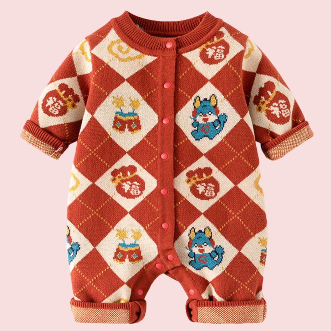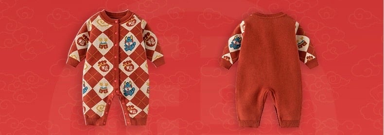 🧨新年款🧨中國風福氣滿滿嬰兒連身爬服 📐尺寸:59|66|73|80|90 📦貨品跟付款先後次序訂貨及發貨💕 商品說明 ※ 因拍攝燈光效果可能造成色差,請以實品顏色為準。
