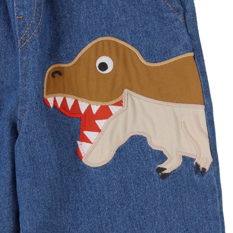 🇯🇵限量預訂 日本直送🇯🇵暴龍刺繡貼布牛仔束腳褲 📅限量搶購 🚚預計貨期:預計12月上旬到貨 (貨期有機會提早或延遲) ■即使在預約期限內,一旦達到預定人數,預約就會結束。 📐尺寸:80|90|95|100|110|120 37% 棉、31% 聚酯纖維、25% 人造絲、6% 再生纖維(纖維素)、1% 聚氨酯