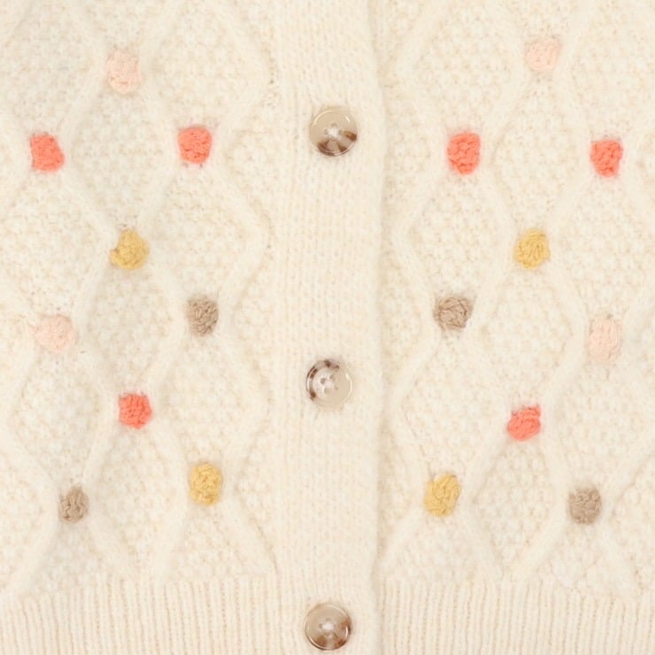 🇯🇵限量預訂 日本直送🇯🇵Conoco 立體絨球麻花針織開襟外套 📅限量搶購 🚚預計貨期:預計12月中旬到貨 (貨期有機會提早或延遲) ■即使在預約期限內,一旦達到預定人數,預約就會結束。 📐尺碼:80|90|100|110|120 75% 聚酯纖維、10% 腈綸、10% 尼龍、5% 羊毛 📦貨品跟付款先後次序訂貨及發貨💕