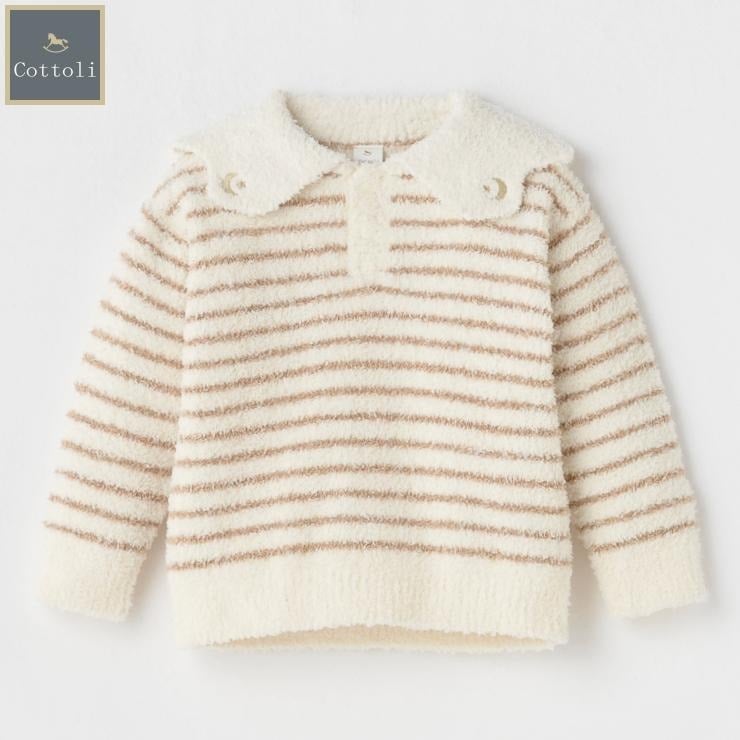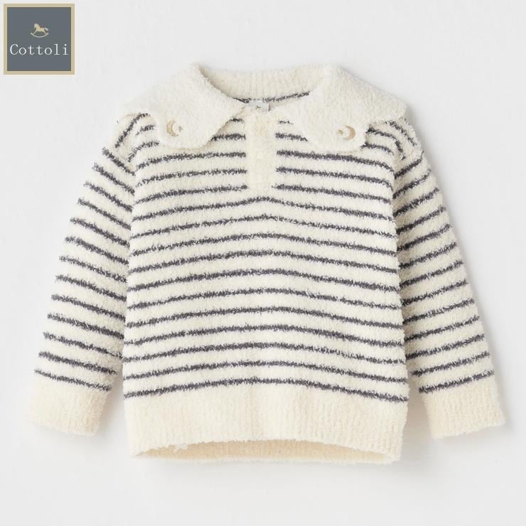 🇯🇵限量預訂 日本直送🇯🇵Cottoli兩色天使翅膀領條紋毛絨針織長袖上衣