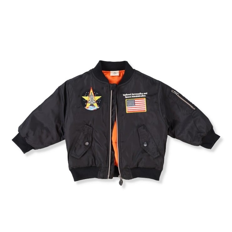 🇯🇵限量預訂 日本直送🇯🇵MY LITTLE WONDER x Nasa印花貼花拉鍊外套 📅限量搶購 🚚預計貨期:預計12月下旬到貨 (貨期有機會提早或延遲) ■即使在預約期限內,一旦達到預定人數,預約就會結束。 🎨顏色:黑色 📐尺碼:80|90|95|100|110|120|130 外層:100% 聚酯纖維 內襯:100% 聚酯纖維 填充物:100% 聚酯纖維 羅紋:95% 棉,5% 聚氨酯 📦貨品跟付款先後次序訂貨及發貨💕