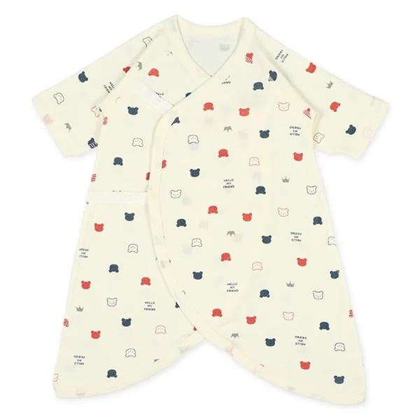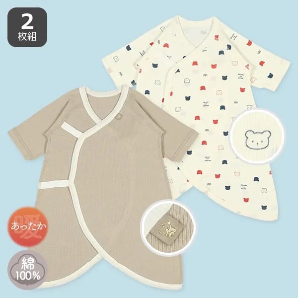 🇯🇵預訂 日本直送🇯🇵保暖材質新生兒純色小熊印花鈕扣蝴蝶衣打底兩件套