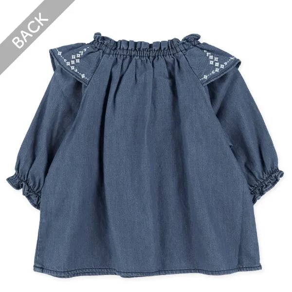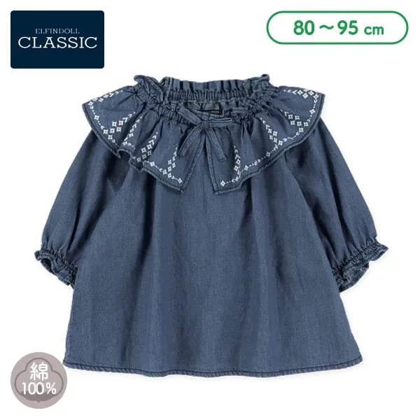 🇯🇵預訂 日本直送🇯🇵刺繡荷葉邊牛仔長袖上衣裙 🚚預計貨期:約14~21個工作天到貨 (貨期有機會提早或延遲) 📐尺碼:80|90|95|100|110|120 100% 棉 📦貨品跟付款先後次序訂貨及發貨💕