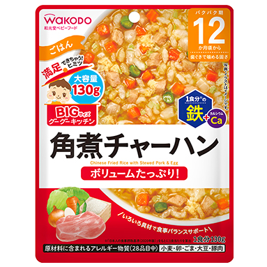 🇯🇵預訂 日本直送🇯🇵和光堂Wakodo紅燒肉炒飯130g(12m+) 🚚預計貨期:約14-21個工作天到貨 (貨期有機會提早或延遲) 它由柔軟蓬鬆的豬肉塊和美味的雞蛋製成,帶有淡淡的甜味。 成分: 蔬菜(洋蔥、胡蘿蔔、高麗菜、四季豆)、精米(國產)、加工豬肉(豬肉、澱粉、鹽、蛋白粉(含雞蛋))、醬油(含小麥和大豆)、蛋白、白砂糖、鰹魚高湯、蛋黃、芝麻油、蔬菜濃湯、扇貝提取物、米糖/增稠劑(澱粉粒) 營養成分: 每袋(130克):能量94千卡,蛋白質1.6-3.9克,脂肪0.9-2.5克,碳水化合物17克,鹽當量0.70克,鈣50毫克,鐵1.5-2.4毫克 食用方法: 由於食品包中的食物已經過調理,所以可以直接食用。如若要加熱的情況,可跟從以下方法: 如使用熱水加熱,請把食品包在未開封的狀態下浸泡在熱水中1-2分鐘。如使用微波爐,請把食品包內的食物倒進相應的器皿中,加熱30秒(500W)。 注意事項及禁忌 •請不要把食品包放在用火加熱中的熱水中。 •由於加熱後的食品包會變得滾燙,所以請小心避免燙傷。 •請在確認食物的溫度後才讓孩子食用。 •請不要食剩後再留待下次食用。 •食品包上的月齡只供參考,請根據孩子的成長而決定是否適合食用。 •請不要食剩後再留待下次食用。 *包裝設計等如有更改,恕不另行通知。