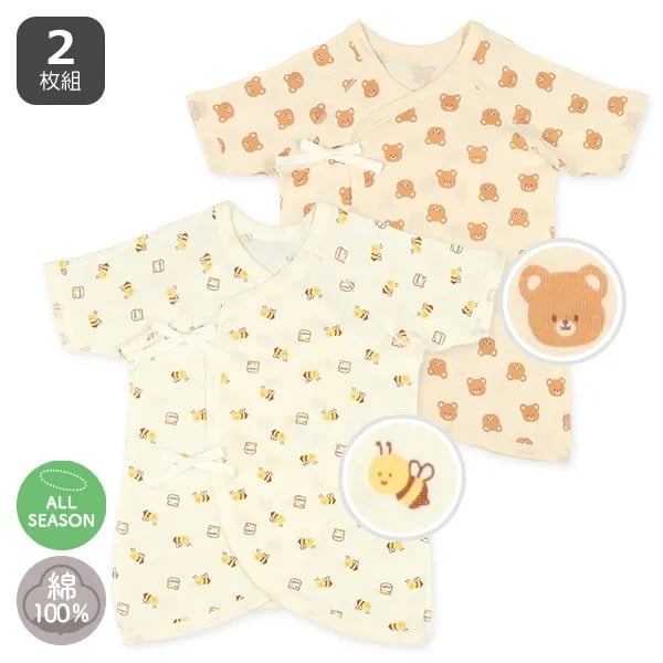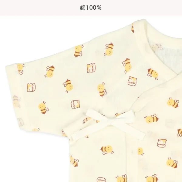 🇯🇵預訂 日本直送🇯🇵四季款新生兒蜜蜂熊印花綁繩蝴蝶衣打底兩件套