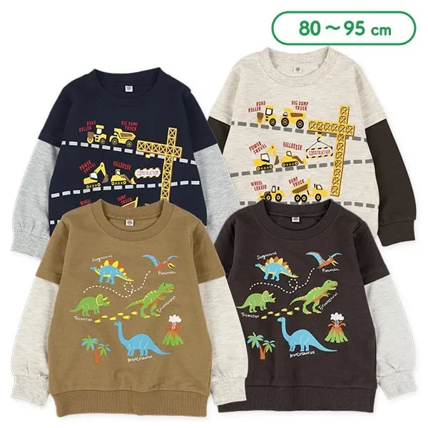🇯🇵預訂 日本直送🇯🇵四色車車恐龍印花假兩件毛圈衛衣