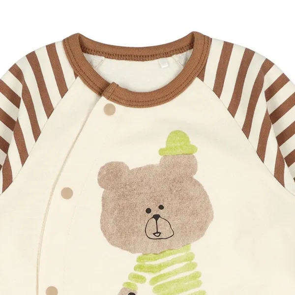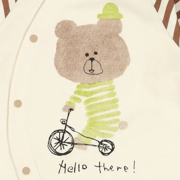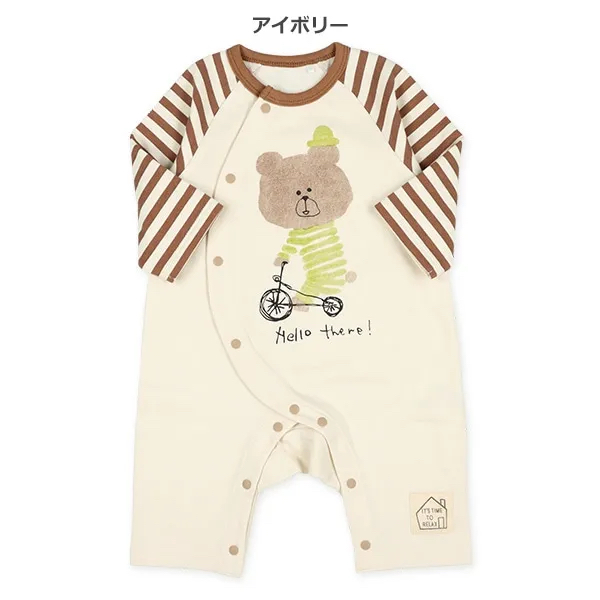 🇯🇵預訂 日本直送🇯🇵小熊單車印花條紋毛圈長袖連身服 🚚預計貨期:約14~21個工作天到貨 (貨期有機會提早或延遲) 📐尺碼:60-70 65% 滌綸,35% 棉 📦貨品跟付款先後次序訂貨及發貨💕