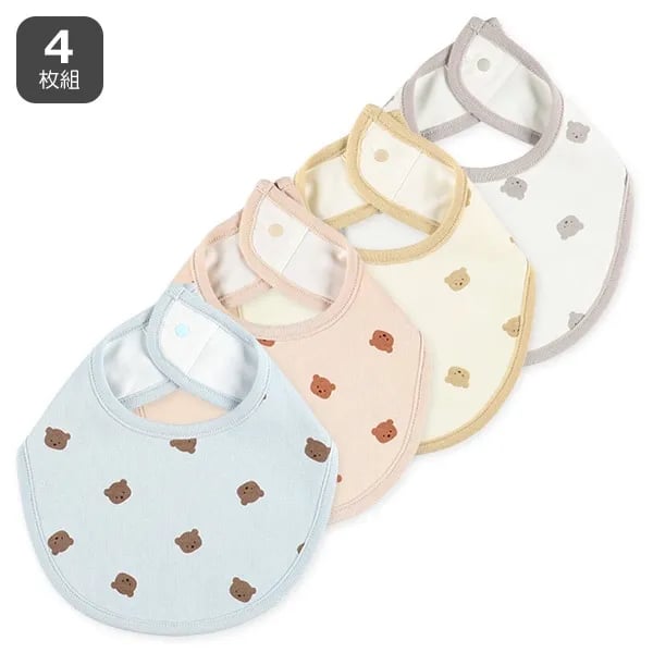 🇯🇵預訂 日本直送🇯🇵小熊滿印口水巾圍兜四件套 🚚預計貨期:約14~21個工作天到貨 (貨期有機會提早或延遲) 包括:四條口水巾 📐尺寸:長度14cm 頸圍32cm -易於穿戴且不易脫落的一鍵式按鈕類型♪ 正面和邊緣:100% 棉 背面:100% 聚酯纖維 📦貨品跟付款先後次序訂貨及發貨💕