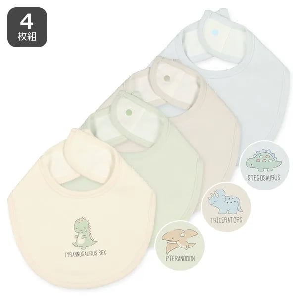 🇯🇵預訂 日本直送🇯🇵恐龍印花口水巾圍兜四件套 📅截單日:逢星期三 🚚預計貨期:截單付款後約14~21個工作天到貨 (貨期有機會提早或延遲) 包括:四條口水巾 📐尺寸:長度14cm 頸圍30cm 易於穿上且不易脫落,一鍵式按鈕類型 正面和邊緣:100% 純棉 背面:100% 聚酯纖維 📦貨品跟付款先後次序訂貨及發貨💕