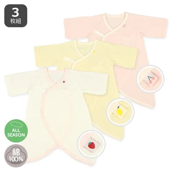 🇯🇵預訂 日本直送🇯🇵新生兒水果標籤棉紗布蝴蝶衣打底三件套(四季款)