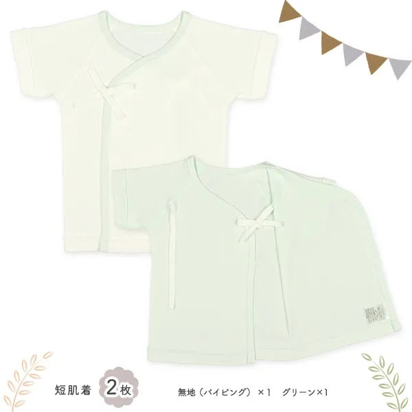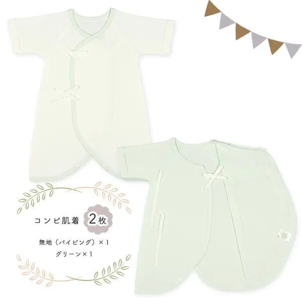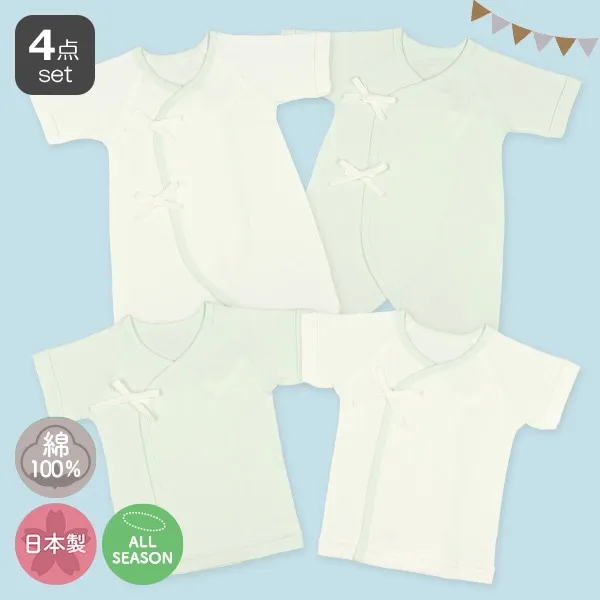 🇯🇵預訂 日本直送🇯🇵日本製新生兒綠色純棉打底四件套(四季款) 包括:兩件蝴蝶衣+兩件短上衣 🚚預計貨期:約14~21個工作天到貨 (貨期有機會提早或延遲) - 全年適用材質 - 100% 純棉 - 汗濕寶寶必備的內衣! - 一鍵式按鈕,易於穿脫 - 內側抽繩可調節寬度 - 從面料到縫紉和檢驗,均在日本製造。 📐尺碼:50~60 📦貨品跟付款先後次序訂貨及發貨💕