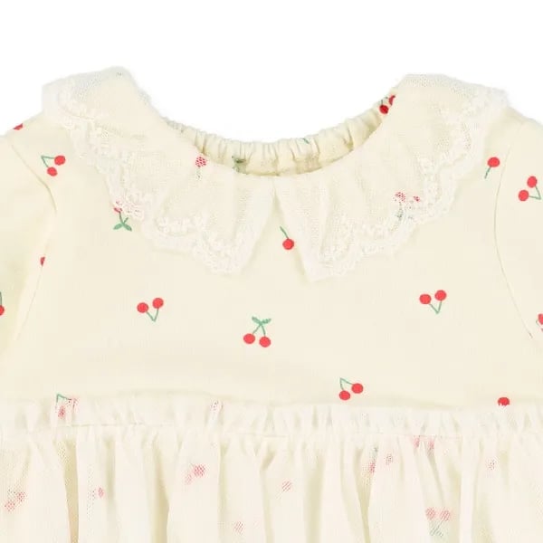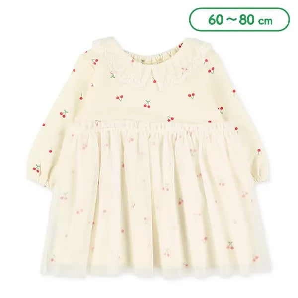 🇯🇵預訂 日本直送🇯🇵櫻桃滿印蕾絲領薄紗毛圈長袖連身裙 🚚預計貨期:約14~21個工作天到貨 (貨期有機會提早或延遲) 📐尺碼:60-70|70-80 主體:100% 棉 領子:55% 棉,45% 尼龍 薄紗:100% 尼龍 📦貨品跟付款先後次序訂貨及發貨💕