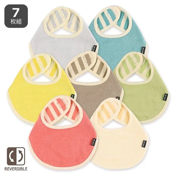🇯🇵預訂 日本直送🇯🇵純色條紋雙面毛巾布口水巾圍兜七件套 🚚預計貨期:約14~21個工作天到貨 (貨期有機會提早或延遲) 包括:七條口水巾 📐尺寸:長度11cm 頸圍28cm -毛巾布材質,正反兩面採用不同布料 -雙面可用 -魔術貼設計♪ 外層:80% 棉,20% 聚酯纖維 內層:100% 棉 📦貨品跟付款先後次序訂貨及發貨💕