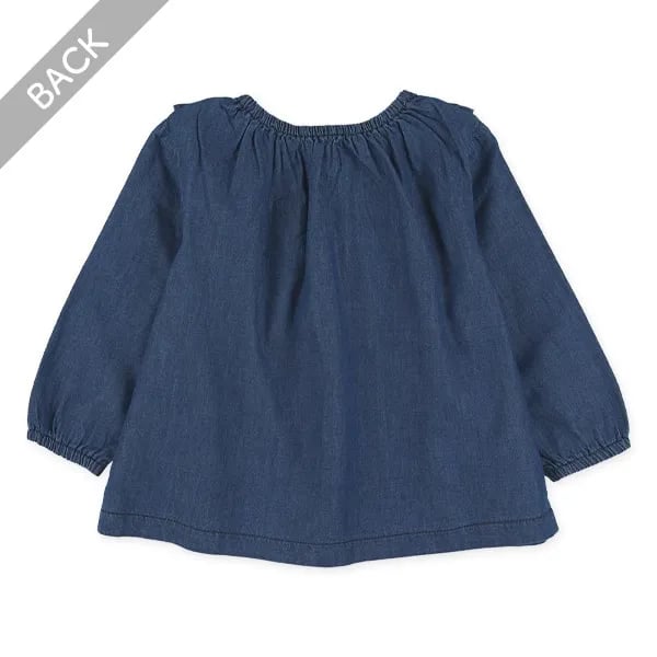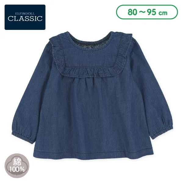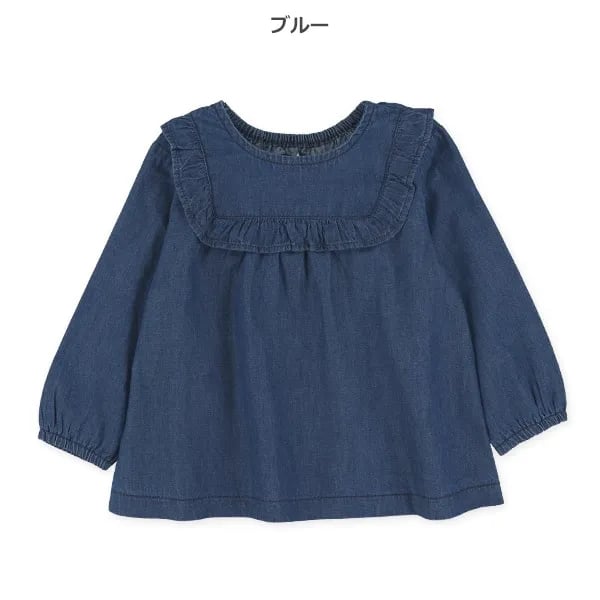 🇯🇵預訂 日本直送🇯🇵 牛仔荷葉邊純棉長袖上衣 🚚預計貨期:約14~21個工作天到貨 (貨期有機會提早或延遲) 🎨顏色:藍色 📐尺碼:80|90|95 100%純棉 📦貨品跟付款先後次序訂貨及發貨💕