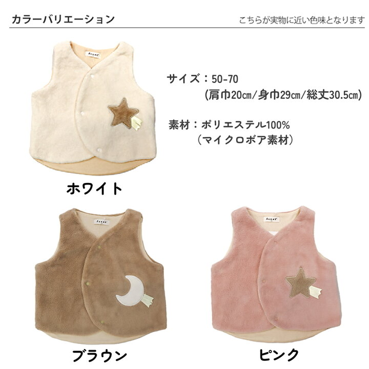🇯🇵預訂 日本直送🇯🇵Aenak星星月亮圖案毛毛背心外套 🚚預計貨期:約14~21個工作日到貨 (貨期有機會提早或延遲) 🎨顏色:象牙|棕色|粉紅 📐尺碼:S (50-70) (肩寬/身寬/總長)(20cm/29cm/30.5cm) 100% 聚酯纖維 📦貨品跟付款先後次序訂貨及發貨💕 商品說明 ※ 因拍攝燈光效果可能造成色差,請以實品顏色為準