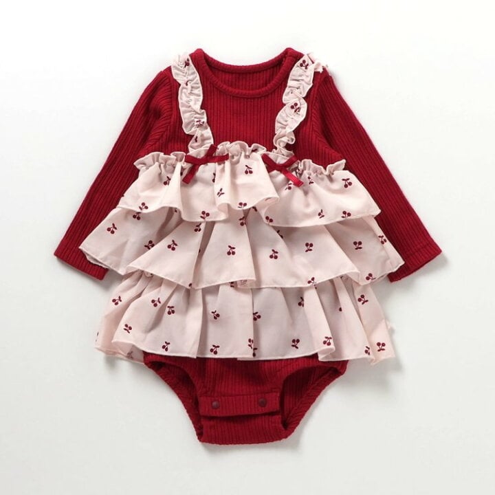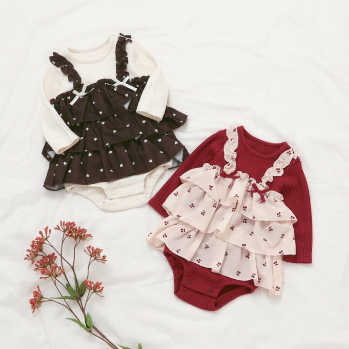 🇯🇵預訂 日本直送🇯🇵Apres les cours兩色櫻桃愛心印花層疊長袖包屁衣 🚚預計貨期:約14~21個工作天到貨 (貨期有機會提早或延遲) 🎨顏色:象牙|紅色 📐尺碼:70|80 主體:54% 人造絲,27% 滌綸,19% 尼龍。 荷葉邊和肩帶:100% 聚酯纖維。 📦貨品跟付款先後次序訂貨及發貨💕