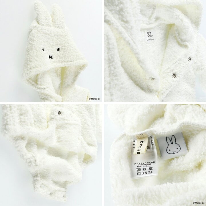 🇯🇵預訂 日本直送🇯🇵Branshes x Miffy系列刺繡毛絨立體耳朵連帽長袖包屁衣