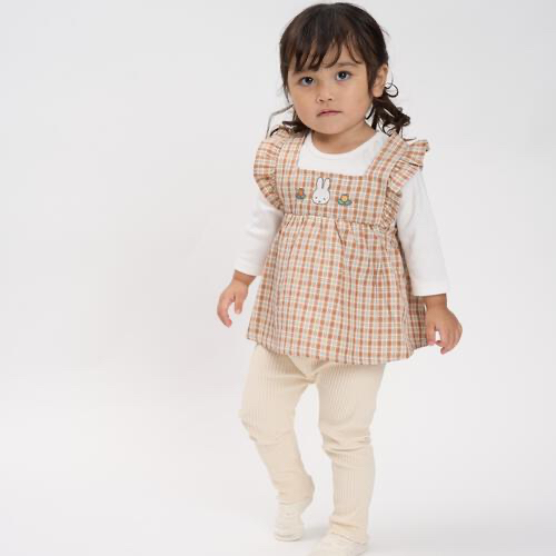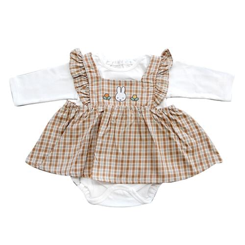 🇯🇵預訂 日本直送🇯🇵Miffy 人物花花刺繡格紋假兩件吊帶長袖包屁裙