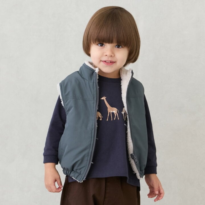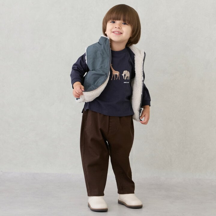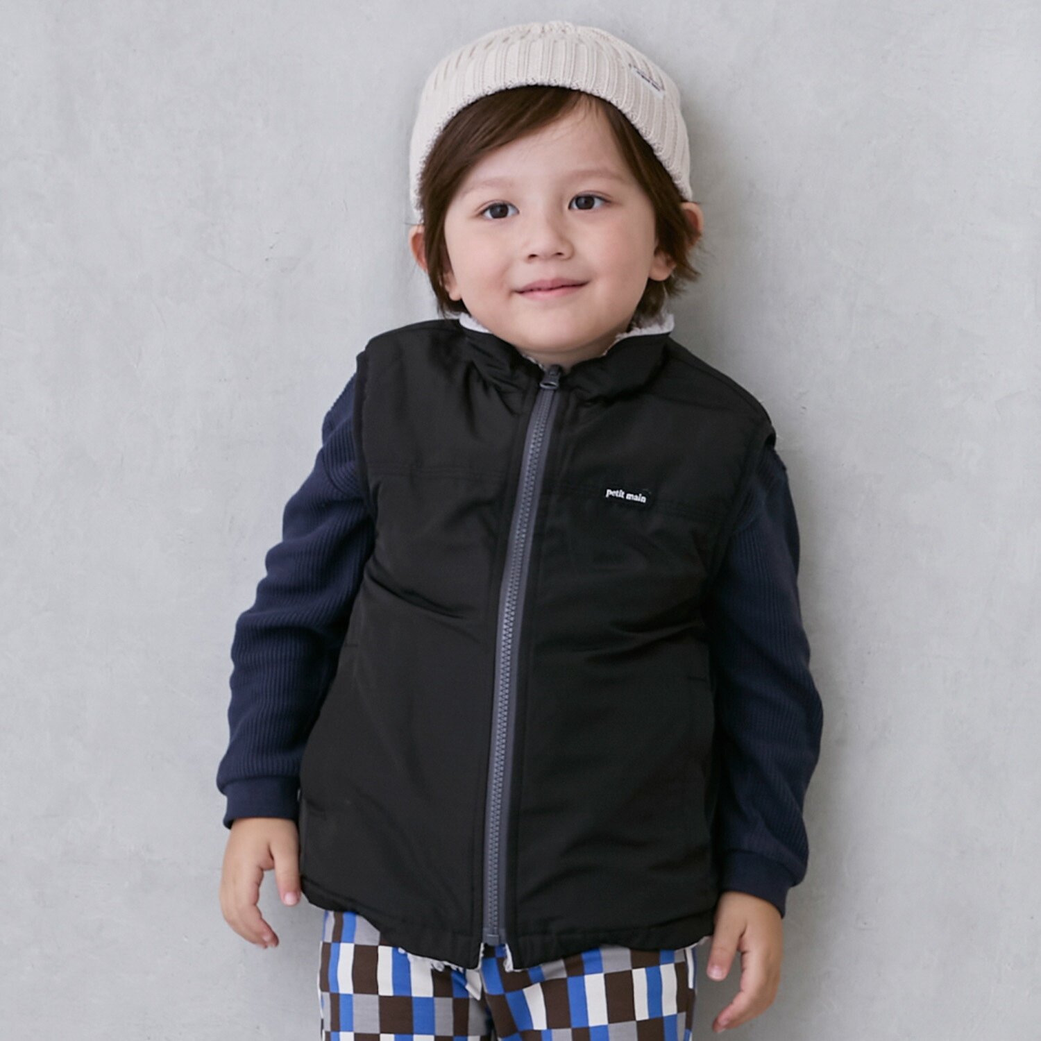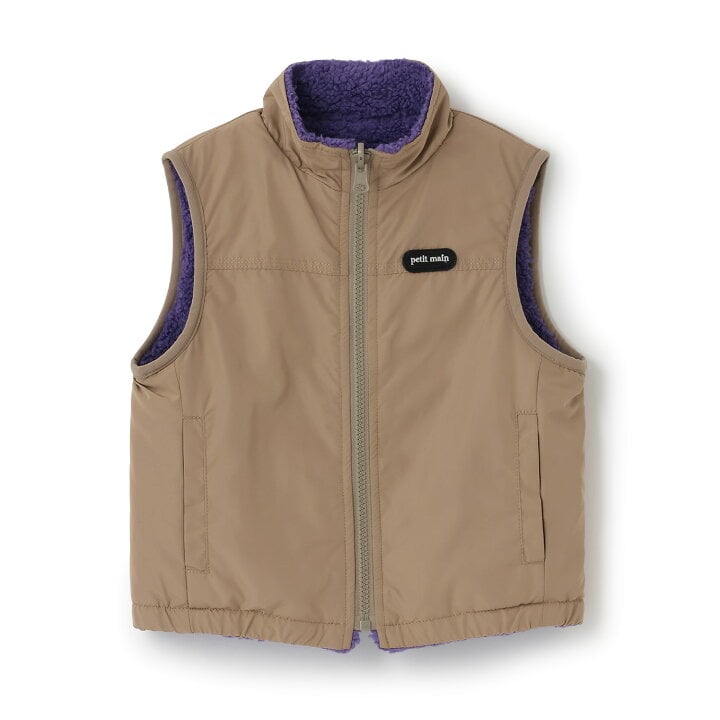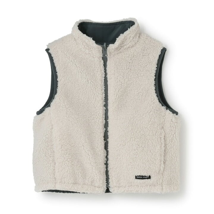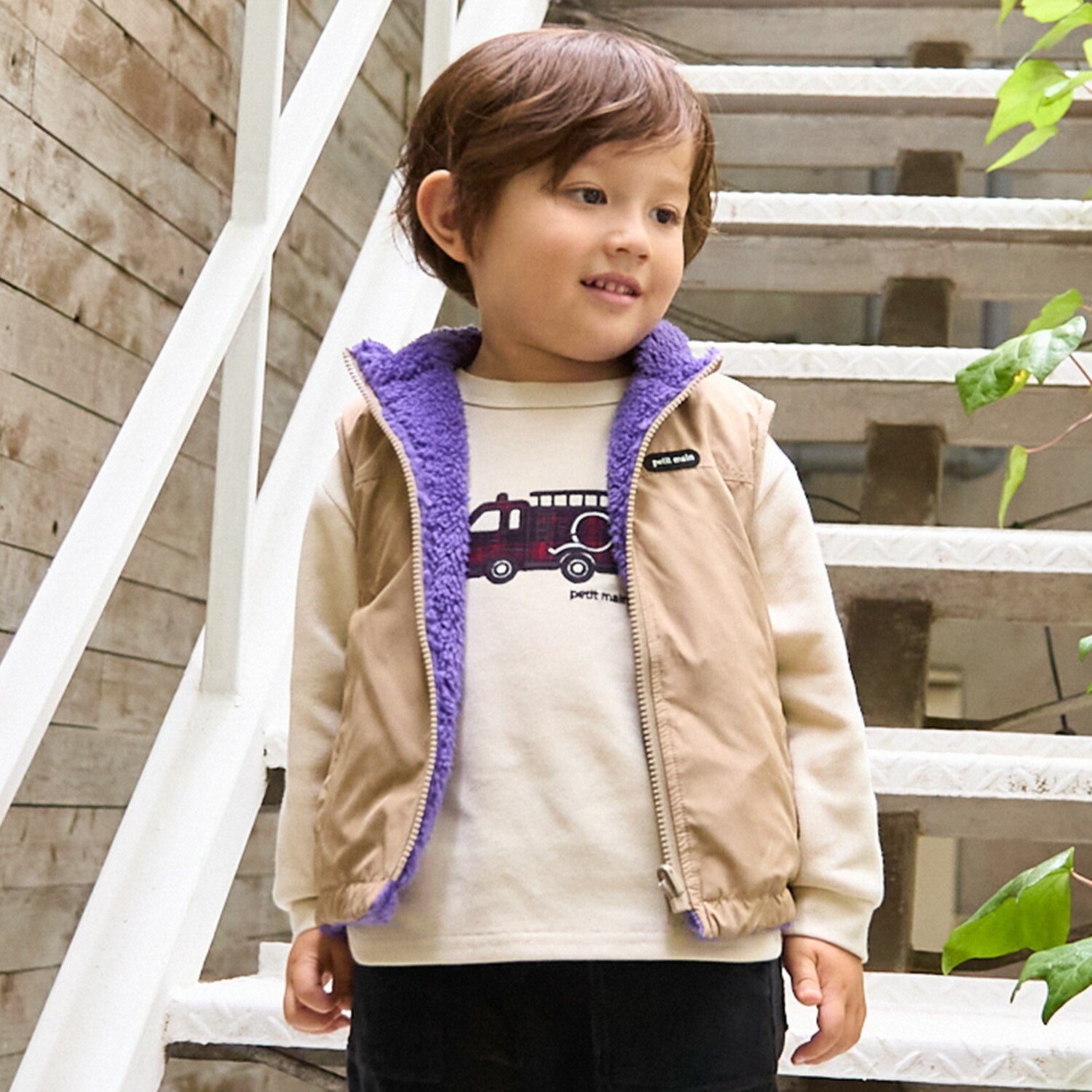 🇯🇵預訂 日本直送🇯🇵Petit Main 三色標誌刺繡毛絨雙面拉鍊背心外套