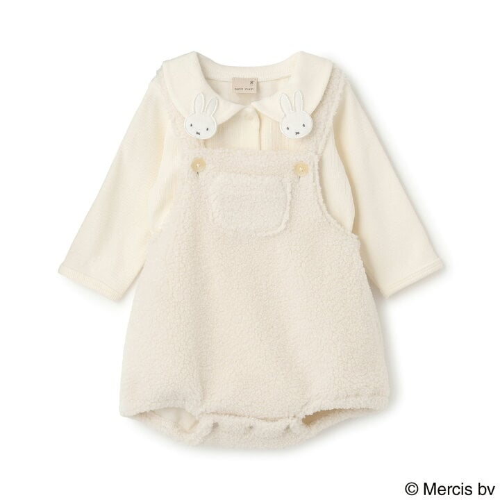 🇯🇵預訂 日本直送🇯🇵Petit Main Miffy系列兩色人物翻領長袖包屁衣連抓絨吊帶褲套裝