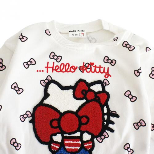 🇯🇵預訂 日本直送🇯🇵Sanrio系列Hello Kitty人物毛毛刺繡蝴蝶結毛圈長袖包屁衣 🚚預計貨期:約14~21個工作天到貨 (貨期有機會提早或延遲) 📐尺碼:70-80 主體抓絨:60% 棉,40% 聚酯纖維 羅紋:95% 棉,5% 聚氨酯 📦貨品跟付款先後次序訂貨及發貨💕