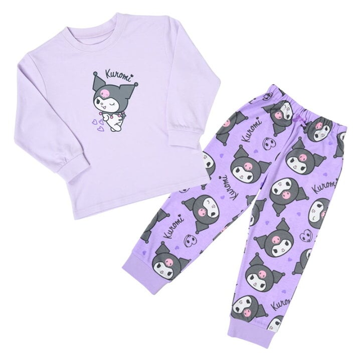 🇯🇵預訂 日本直送🇯🇵Sanrio系列Kuromi印花滿印長袖家居服上下套裝 🚚預計貨期:約14-21個工作天到貨 (貨期有機會提早或延遲) 📐尺碼:90|100|110|120|130|140 主體:65%聚酯纖維、35%棉 羅紋部分:62%聚酯纖維、33%棉、5%聚氨酯 📦貨品跟付款先後次序訂貨及發貨💕