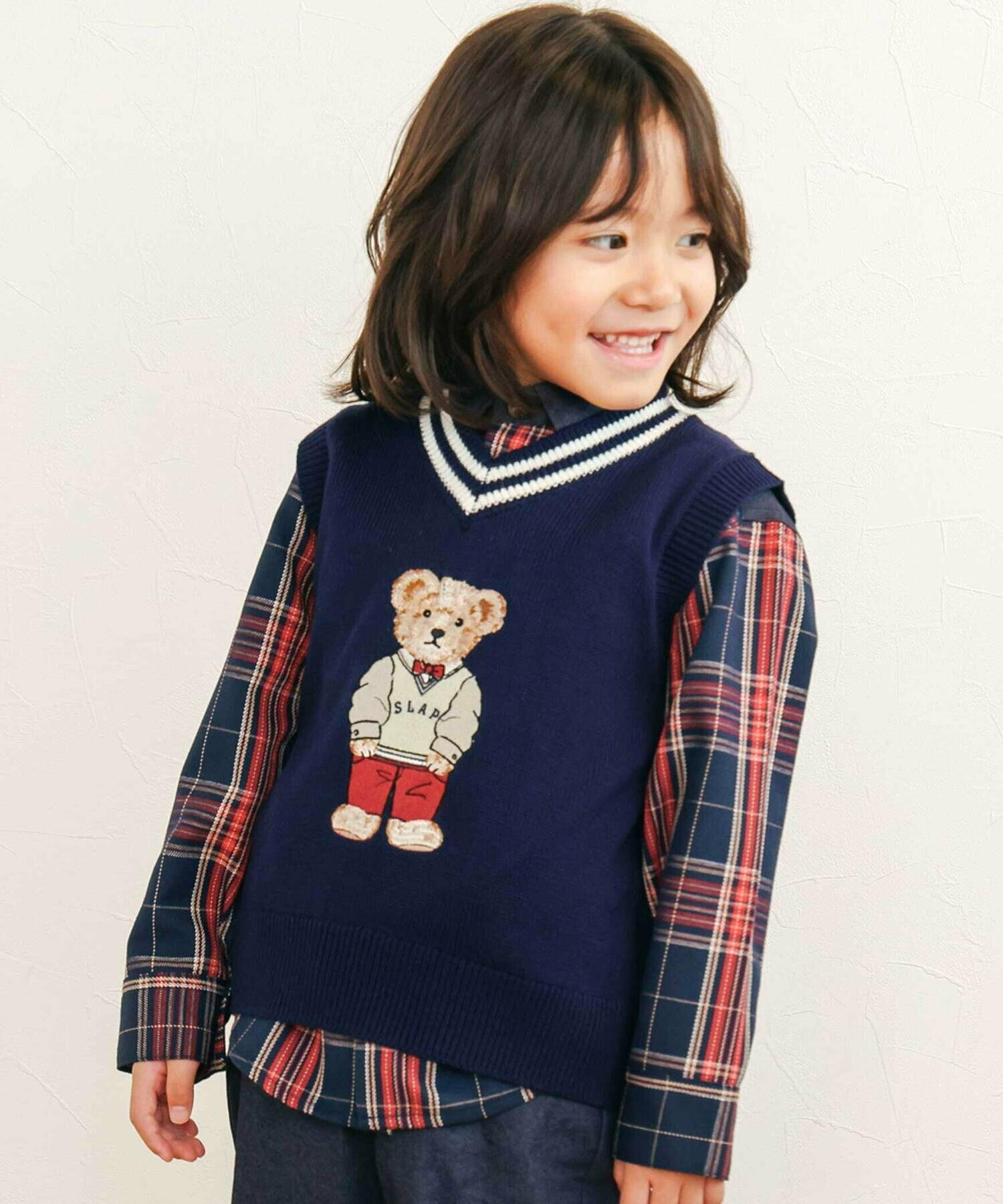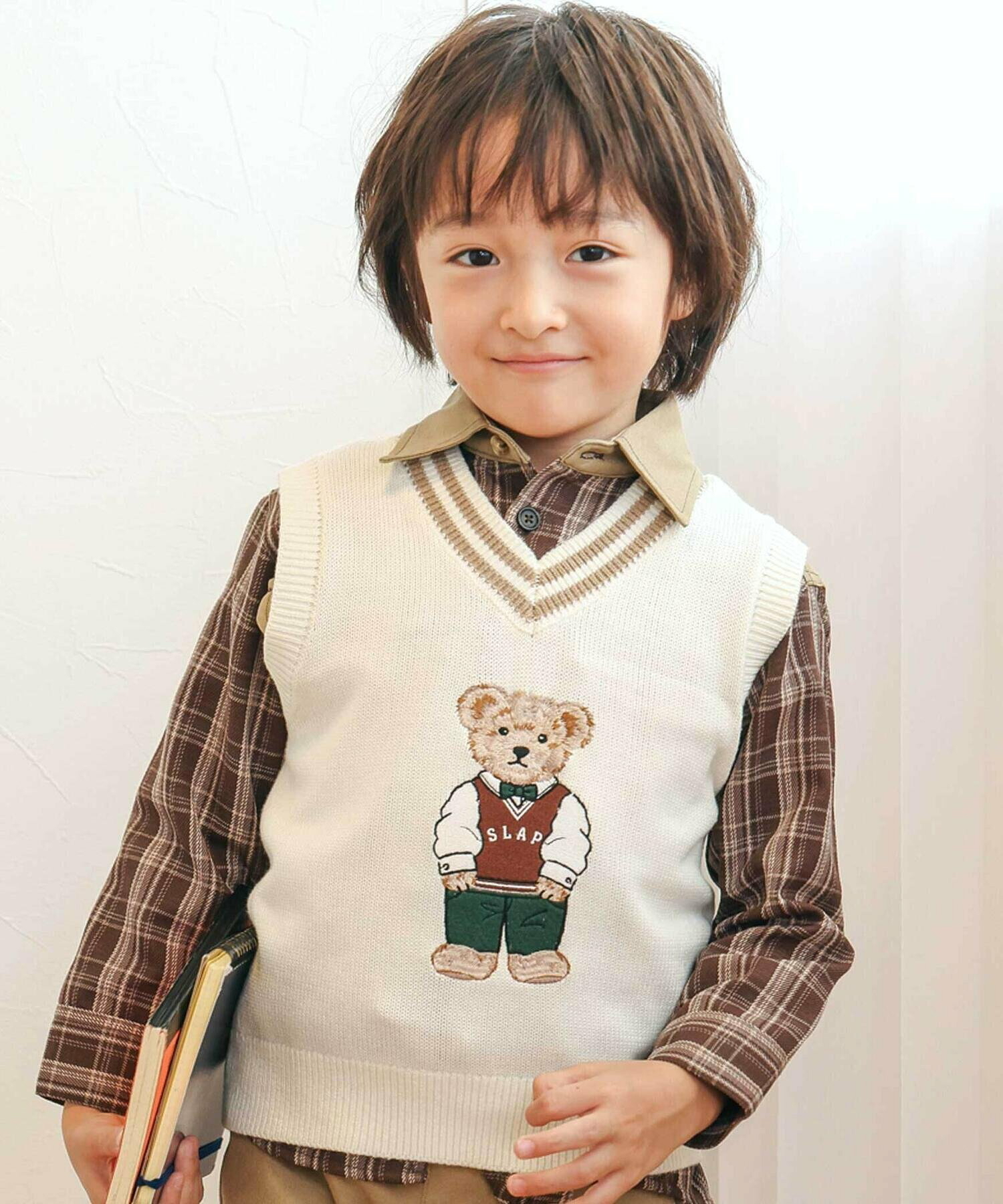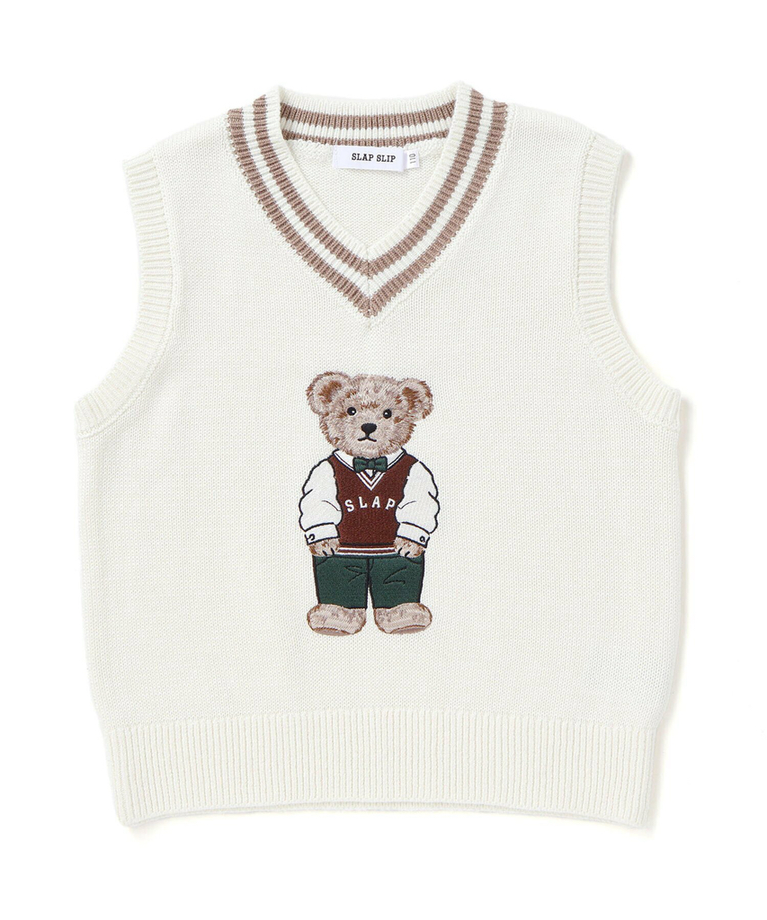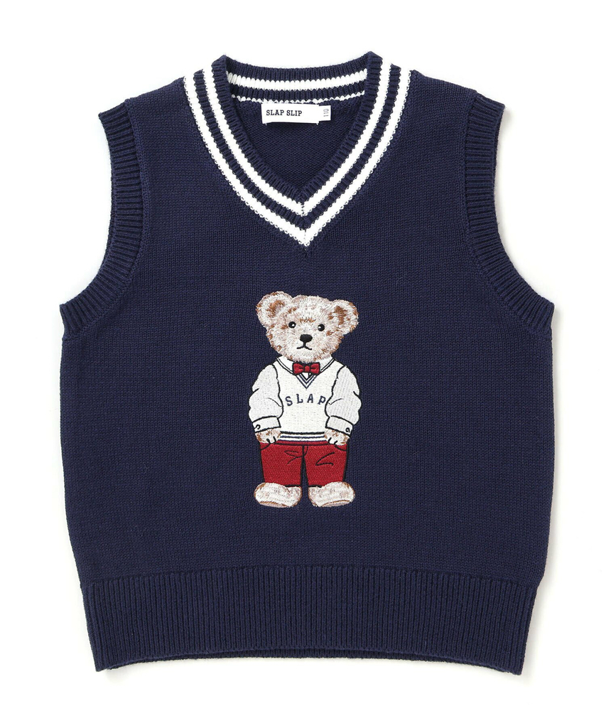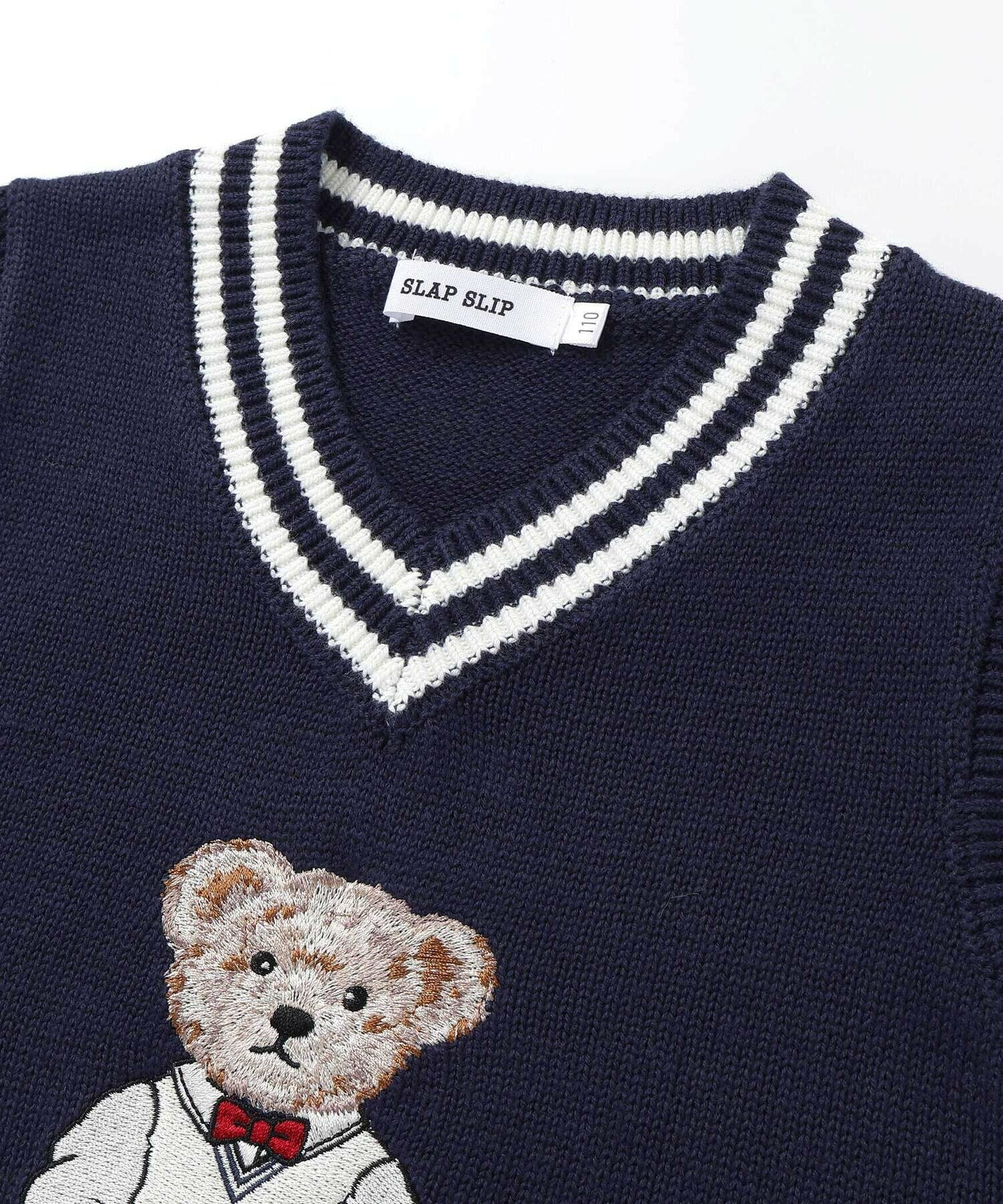 🇯🇵預訂 日本直送🇯🇵Slap Slip兩色小熊刺繡羅紋針織背心 🚚預計貨期:約14-21個工作天到貨 (貨期有機會提早或延遲) 🎨顏色:米白|海軍藍 📐尺碼:80|90|100|110|120|130 (主體)55% 腈綸,45% 棉 羅紋:49% 腈綸,43% 棉,7% 滌綸,1% 聚氨酯 📦貨品跟付款先後次序訂貨及發貨💕