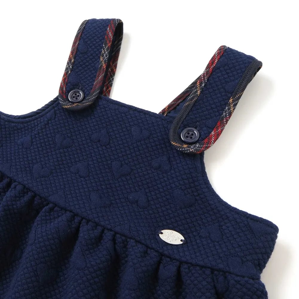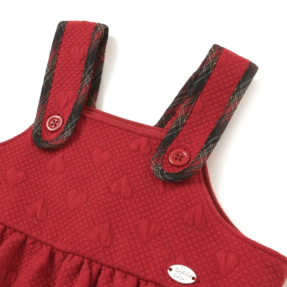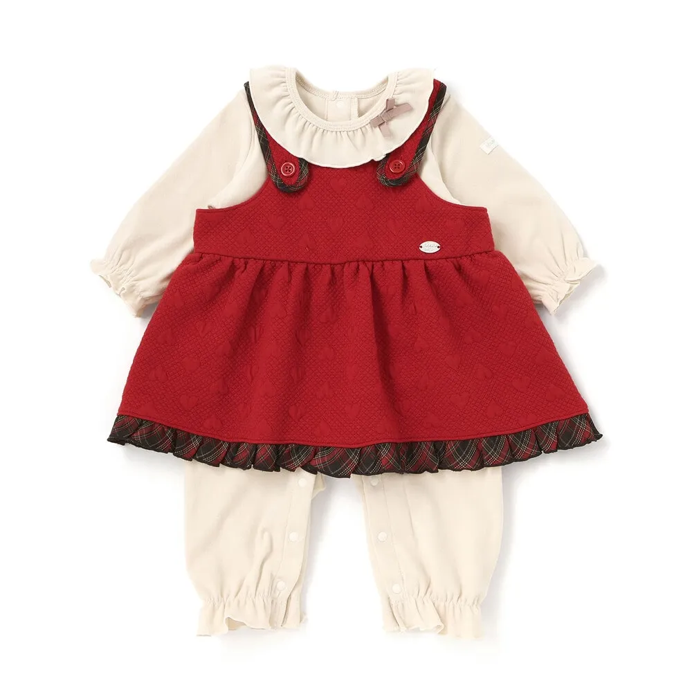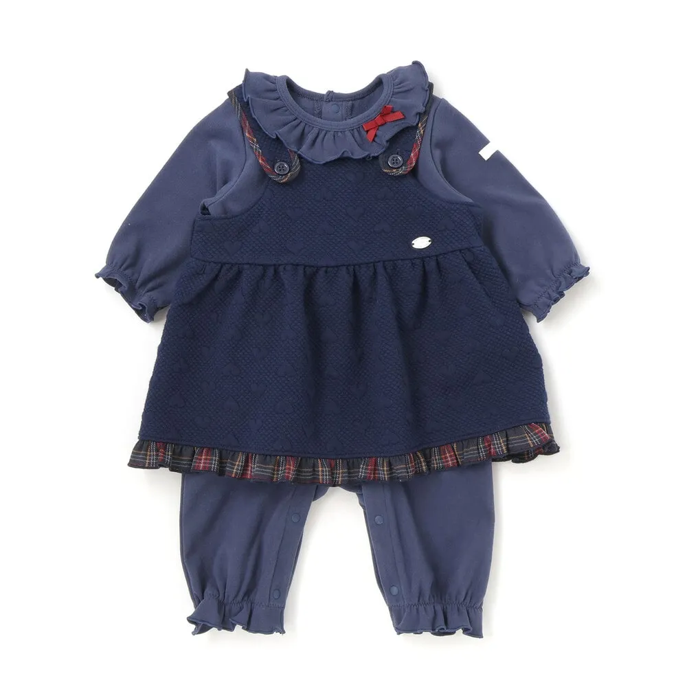 🇯🇵預訂 日本直送🇯🇵Slap Slip兩色愛心絎縫吊帶裙長袖連身服兩件套裝 🚚預計貨期:約14-21個工作天到貨 (貨期有機會提早或延遲) 這款兩件套裝包含一條背帶裙和一件長袖連身衣,專為女童設計 。 背帶裙採用心形絎縫布料,裙擺飾有荷葉邊,肩帶上點綴著格子滾邊,可愛俏皮。 蓬鬆的裙子設計方便寶寶活動,同時又不失優雅氣質。連身衣的荷葉邊領口增添了一絲柔美氣息。袖口和扇形邊設計更添幾分可愛 🎨顏色:海軍藍|紅色 📐尺碼:70|80 📦貨品跟付款先後次序訂貨及發貨💕