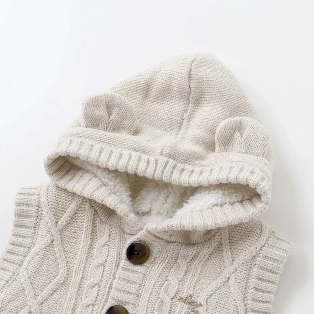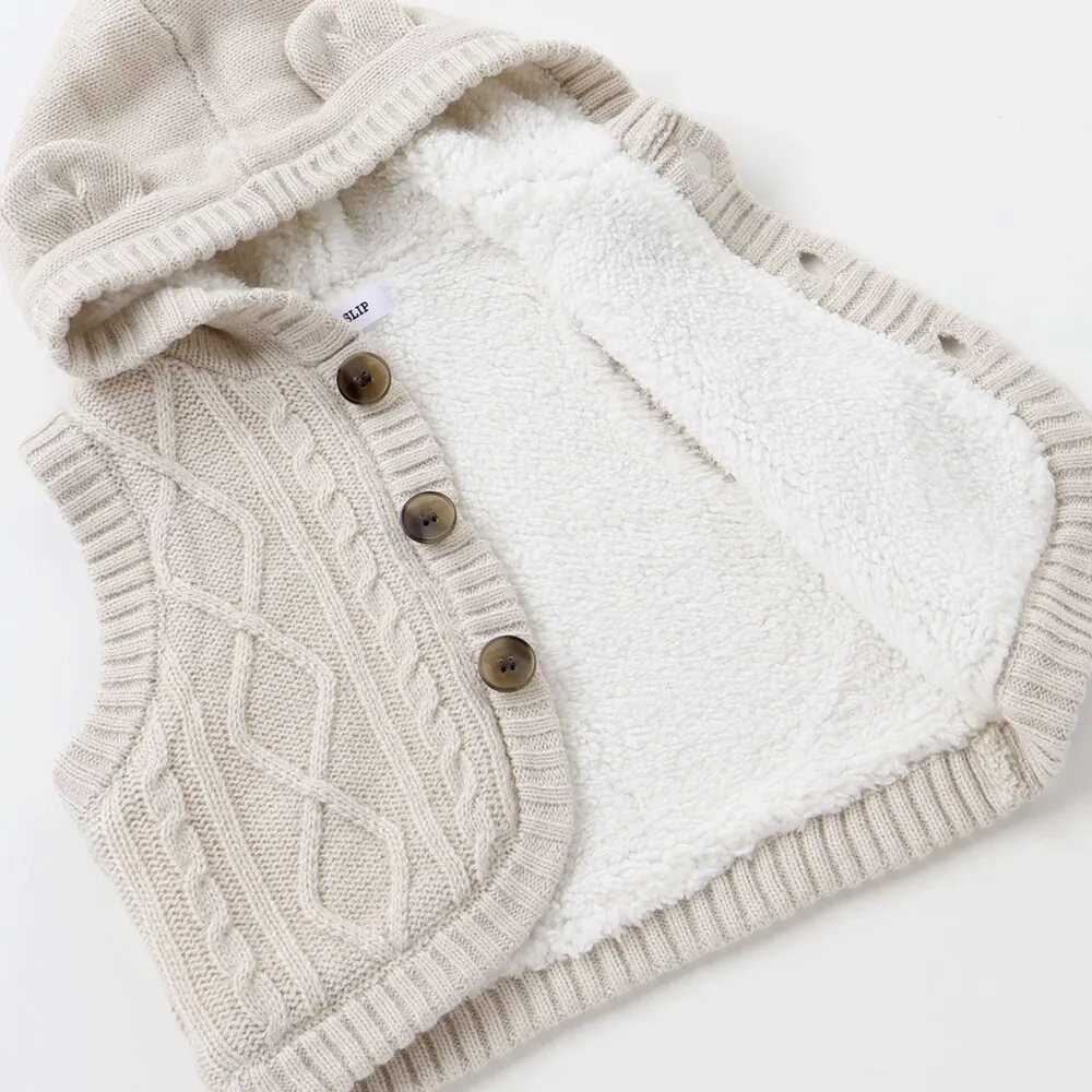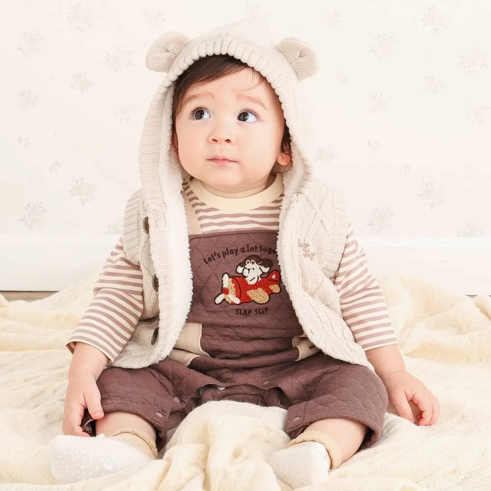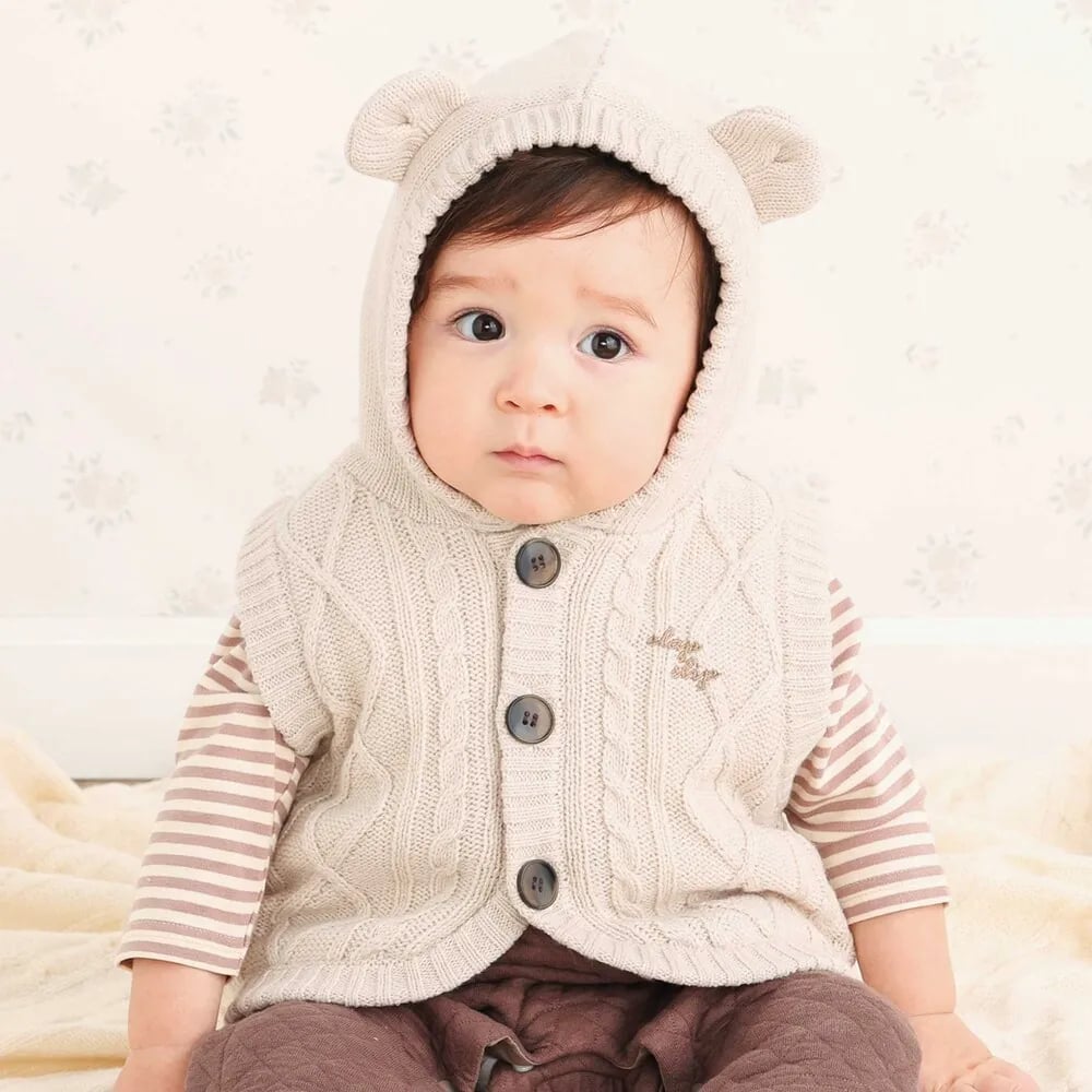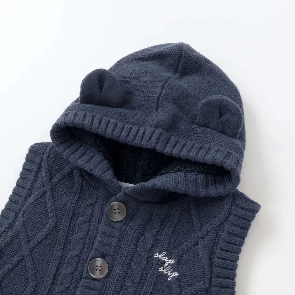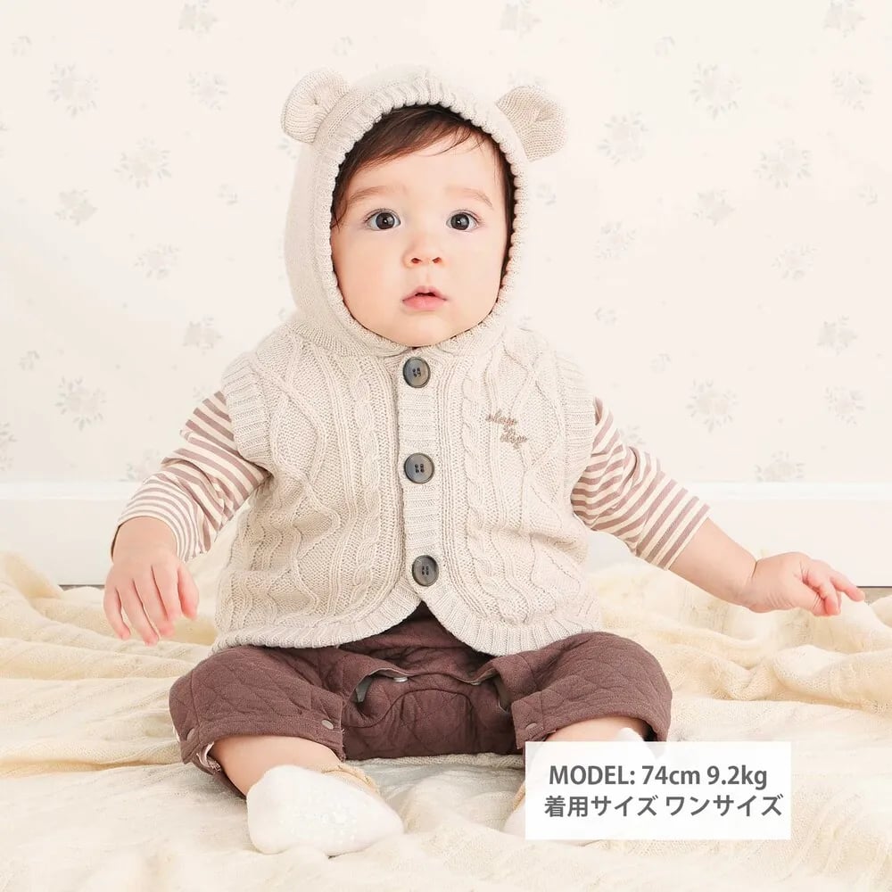 🇯🇵預訂 日本直送🇯🇵Slap Slip兩色熊耳連帽麻花針織絨毛背心 🚚預計貨期:約14-21個工作天到貨 (貨期有機會提早或延遲) 戴上帽子,可愛的熊耳朵就會蹦出來。 前後都超級萌。 立體麻花針織和羊毛絨布料增添了季節感。 正面霧面紐扣更添時尚氣息。 🎨顏色:海軍藍|米白 📐尺碼:70-80 (正面)100% 腈綸(背部)100% 聚酯纖維 📦貨品跟付款先後次序訂貨及發貨💕