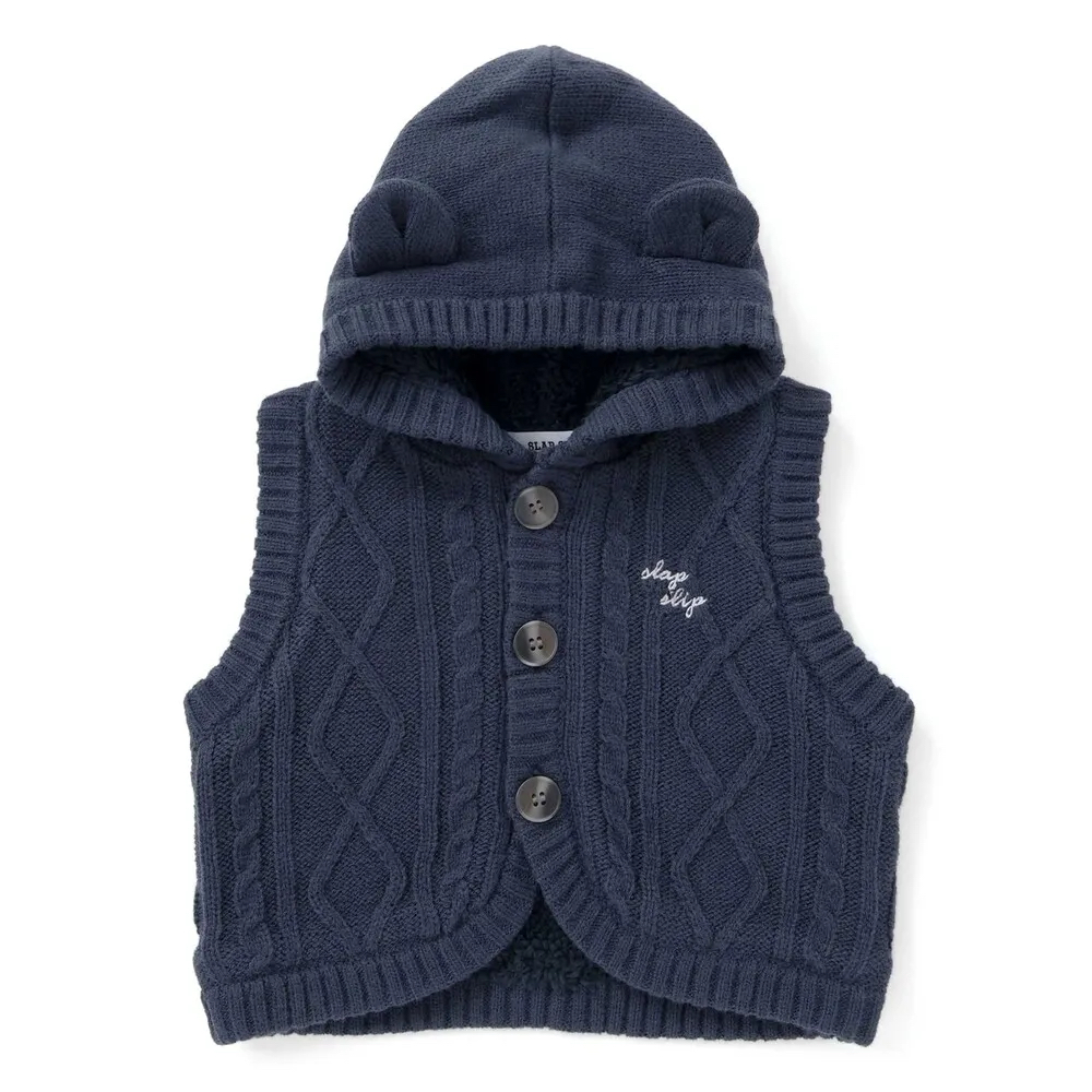 🇯🇵預訂 日本直送🇯🇵Slap Slip兩色熊耳連帽麻花針織絨毛背心