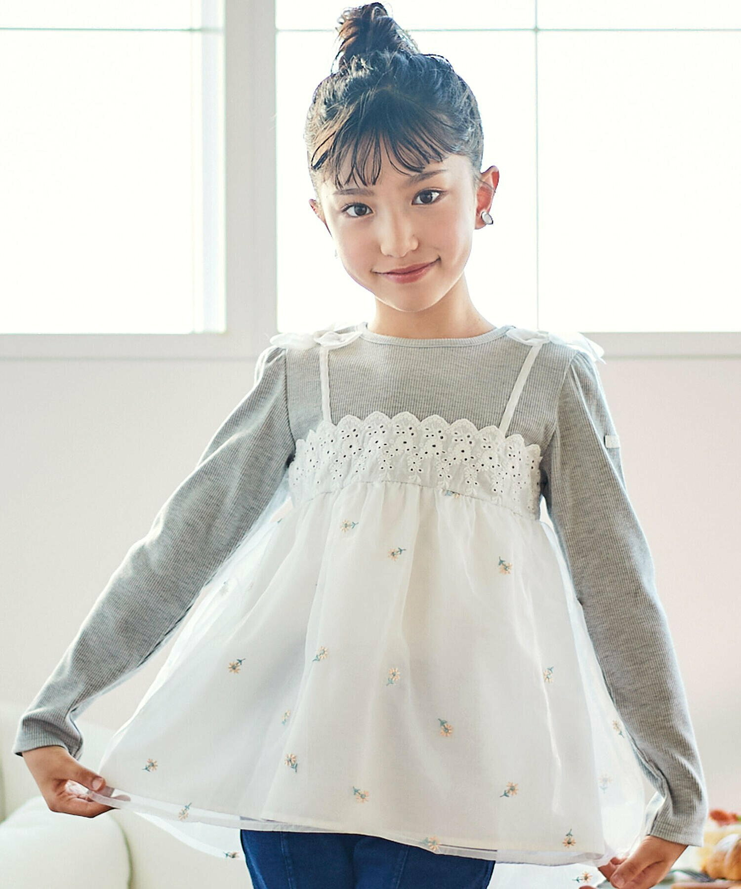 🇯🇵預訂 日本直送🇯🇵Slap Slip兩色花卉刺繡歐根紗蝴蝶結吊帶假兩件長袖上衣 🚚預計貨期:約14-21個工作天到貨 (貨期有機會提早或延遲) 獨特的花卉刺繡設計是每個顏色的亮點 肩帶飾有蝴蝶結,使這件商品充滿了可愛的細節。 🎨顏色:灰色|米白 📐尺碼:80|90|100|110|120|130 主體:43%人造絲、29%聚酯纖維、23%尼龍、5%聚氨酯 (吊帶背心) 外層:100%聚酯纖維 襯裡:80%聚酯纖維、20%棉 部分使用:100%聚酯纖維 📦貨品跟付款先後次序訂貨及發貨💕