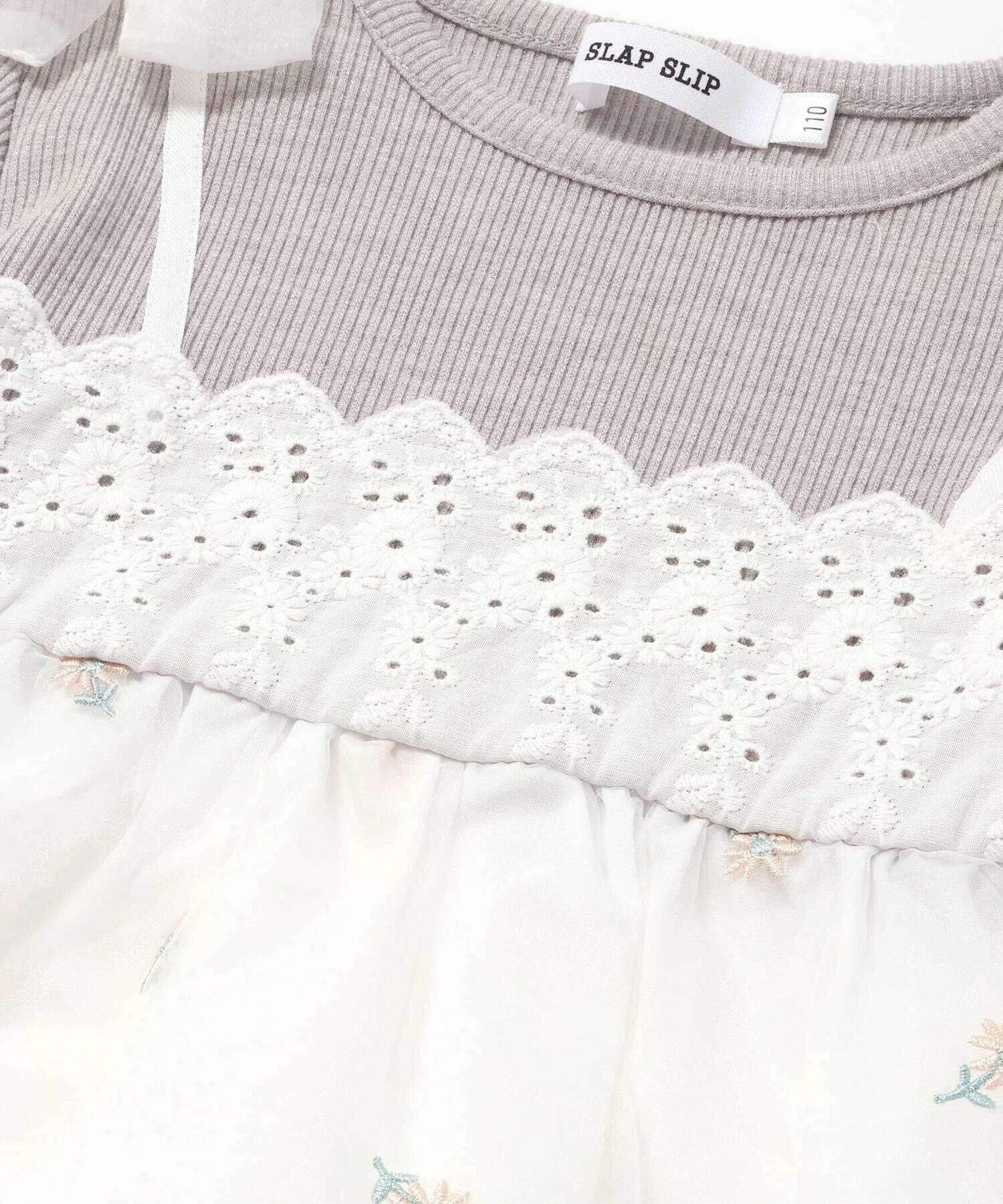 🇯🇵預訂 日本直送🇯🇵Slap Slip兩色花卉刺繡歐根紗蝴蝶結吊帶假兩件長袖上衣