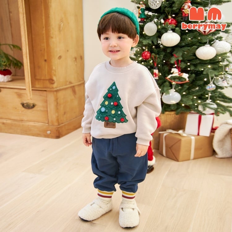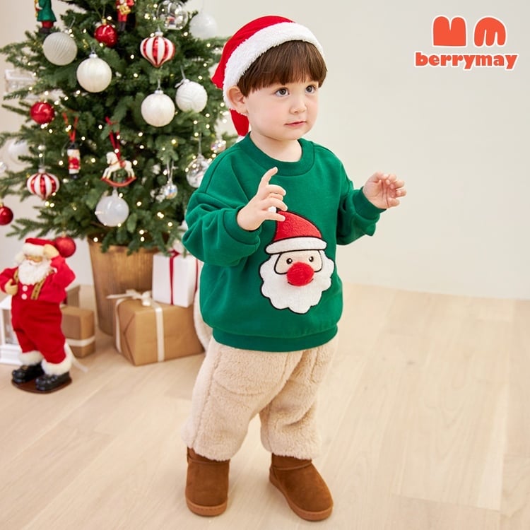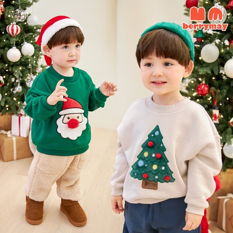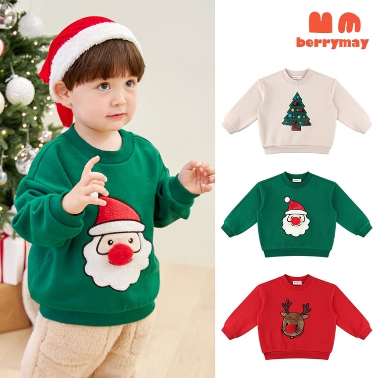 🇰🇷預訂 韓國直送🇰🇷Berrymay三色聖誕貼花絨球拉絨寬鬆衛衣