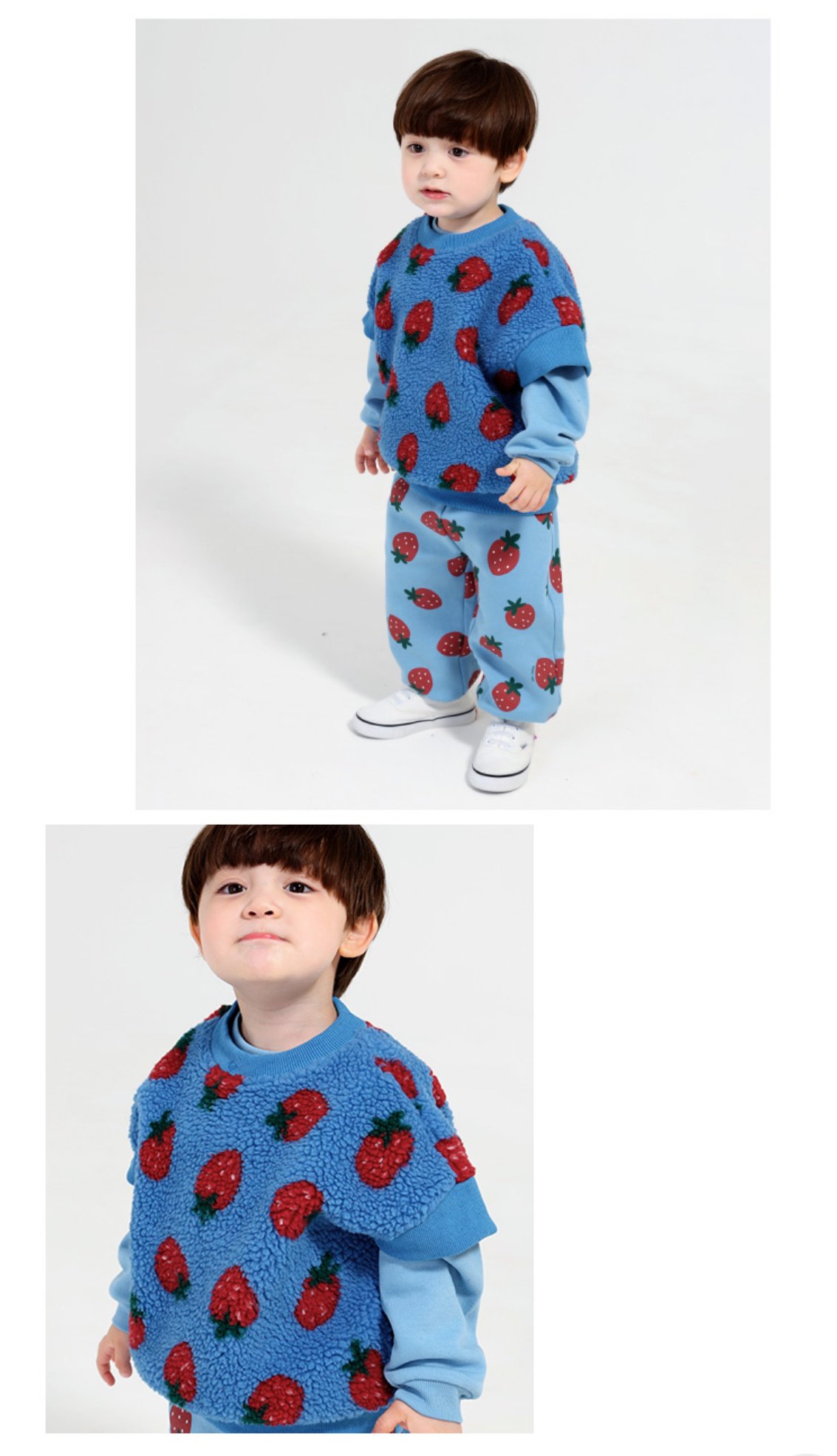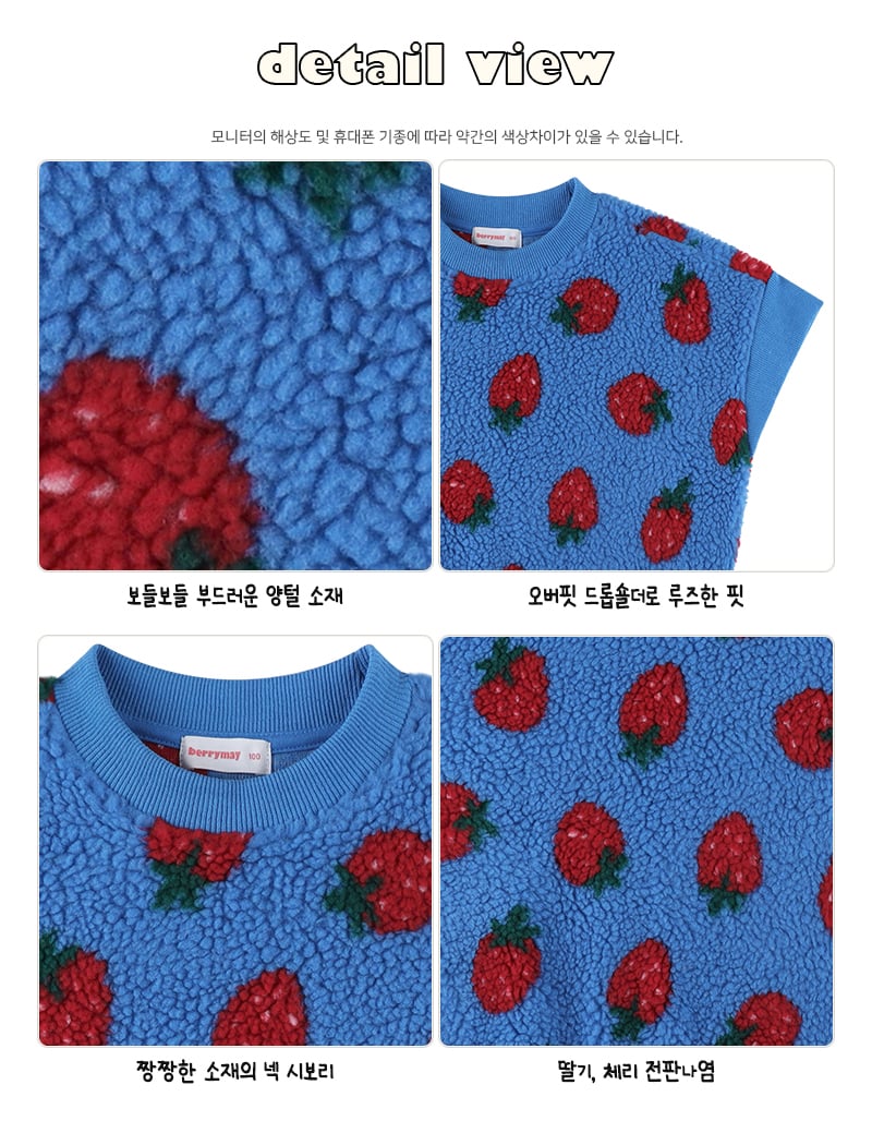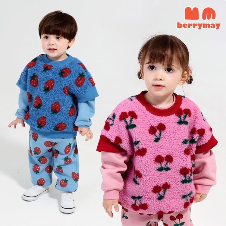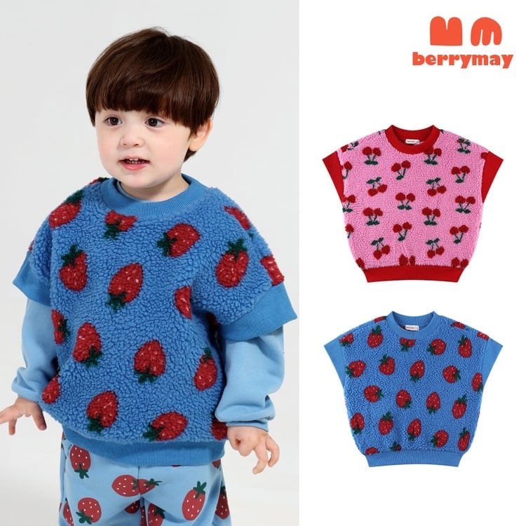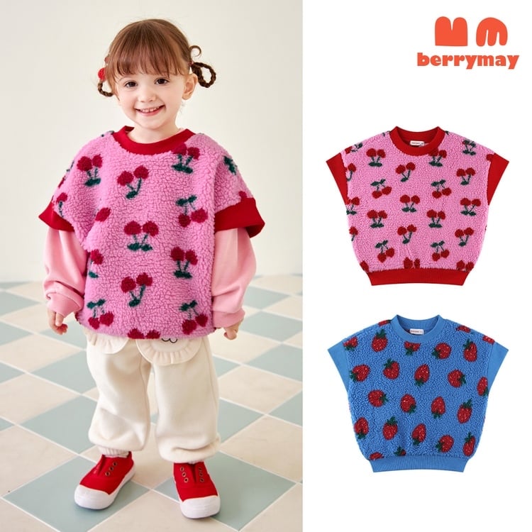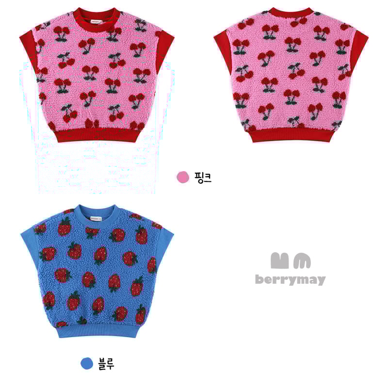 🇰🇷預訂 韓國直送🇰🇷Berrymay兩色水果圖案羊羔絨寬鬆落肩背心 🚚預計貨期:約14~21個工作天到貨 (貨期有機會提早或延遲) 🎨顏色:藍色|粉紅 📐尺碼:90|100|110|120|130 100% 聚酯纖維 【顏色組合】73%聚酯纖維、23%棉、4%聚氨酯 中國製 📦貨品跟付款先後次序訂貨及發貨💕