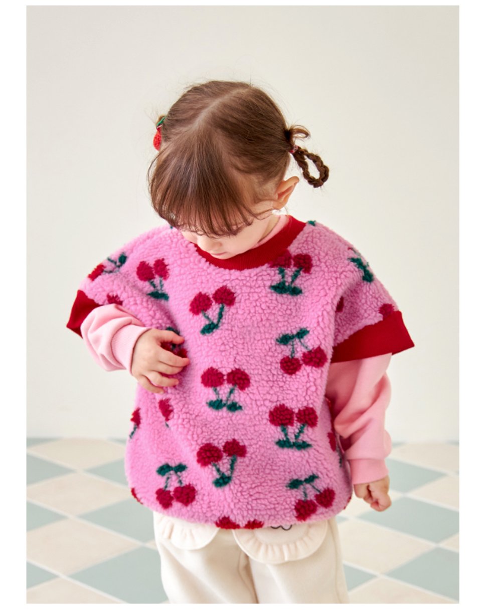 🇰🇷預訂 韓國直送🇰🇷Berrymay兩色水果圖案羊羔絨寬鬆落肩背心