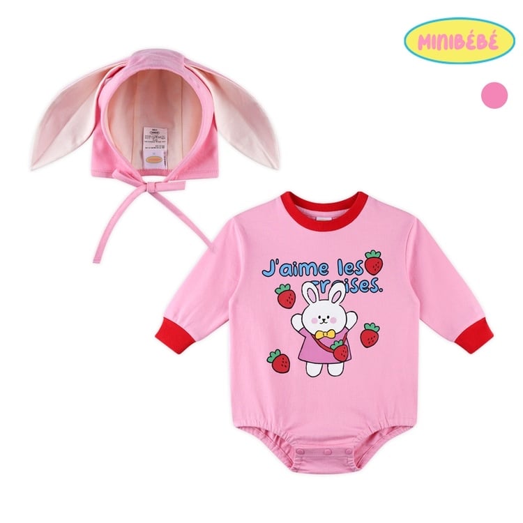 🇰🇷預訂 韓國直送🇰🇷Berrymay Mini bebe小兔印花長袖包屁衣兔帽套裝