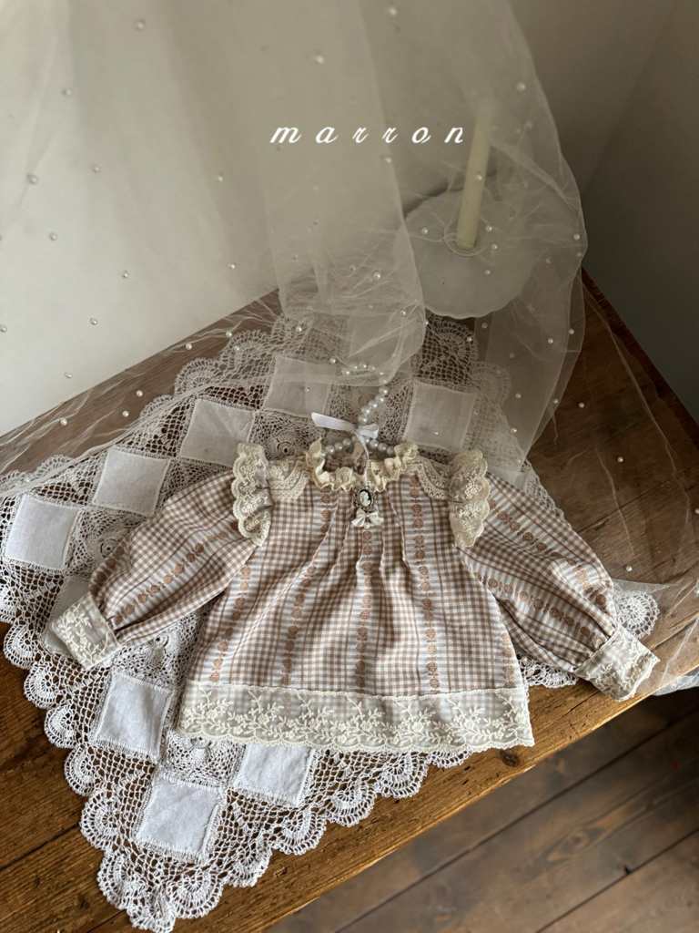 🌸預訂 韓國直送🌸🇰🇷Marron兩色維多利亞風蕾絲花邊格紋長袖襯衫