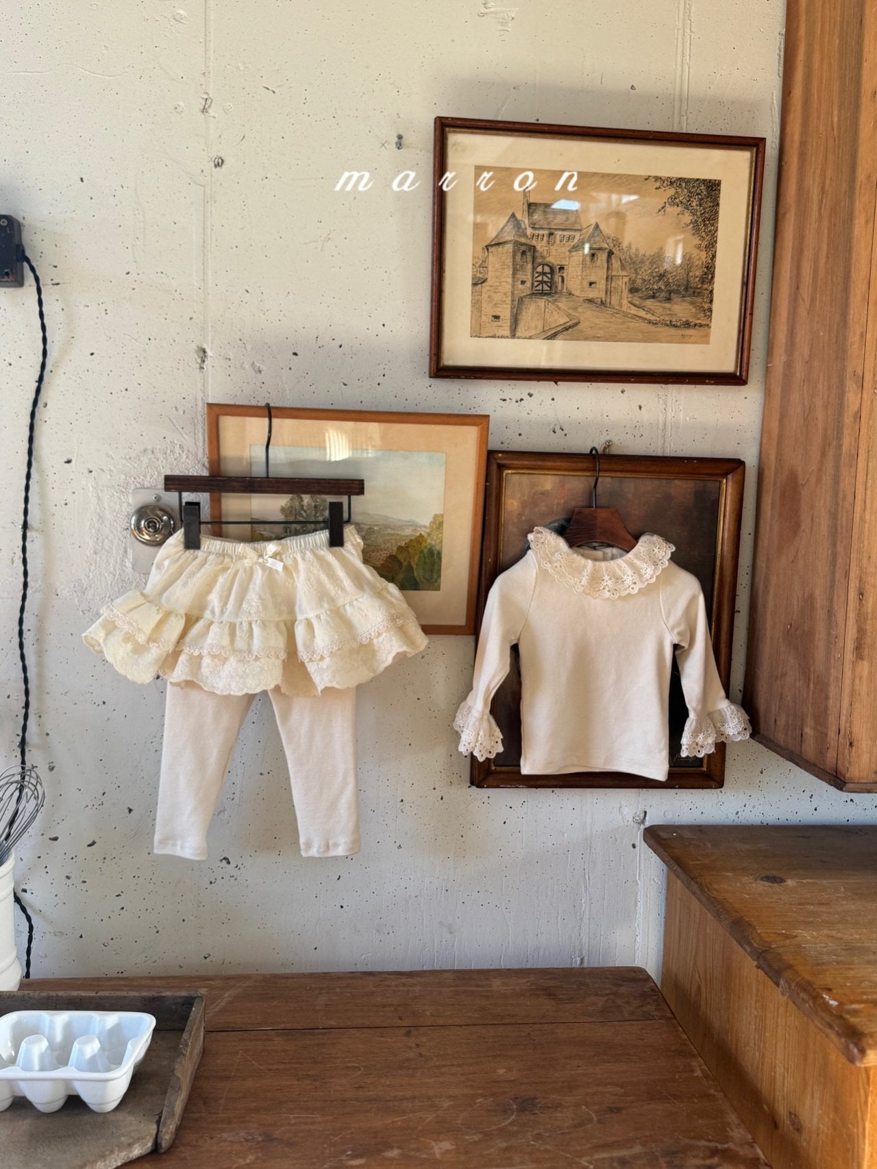 🌸預訂 韓國直送🌸🇰🇷Marron蕾絲花邊刺繡大蝴蝶結層疊裙擺連打底褲