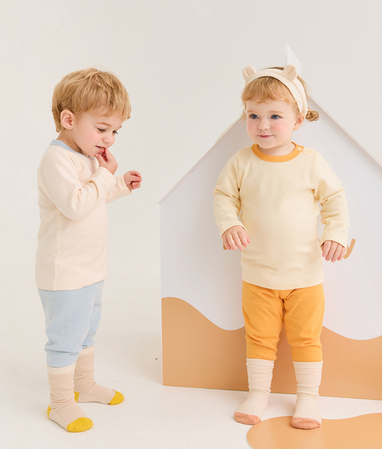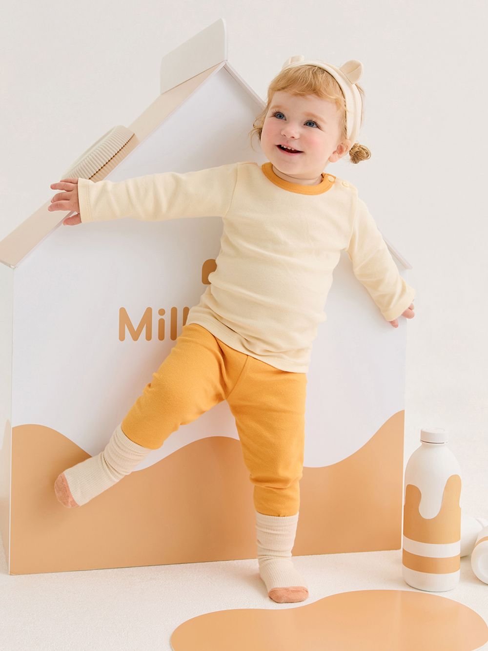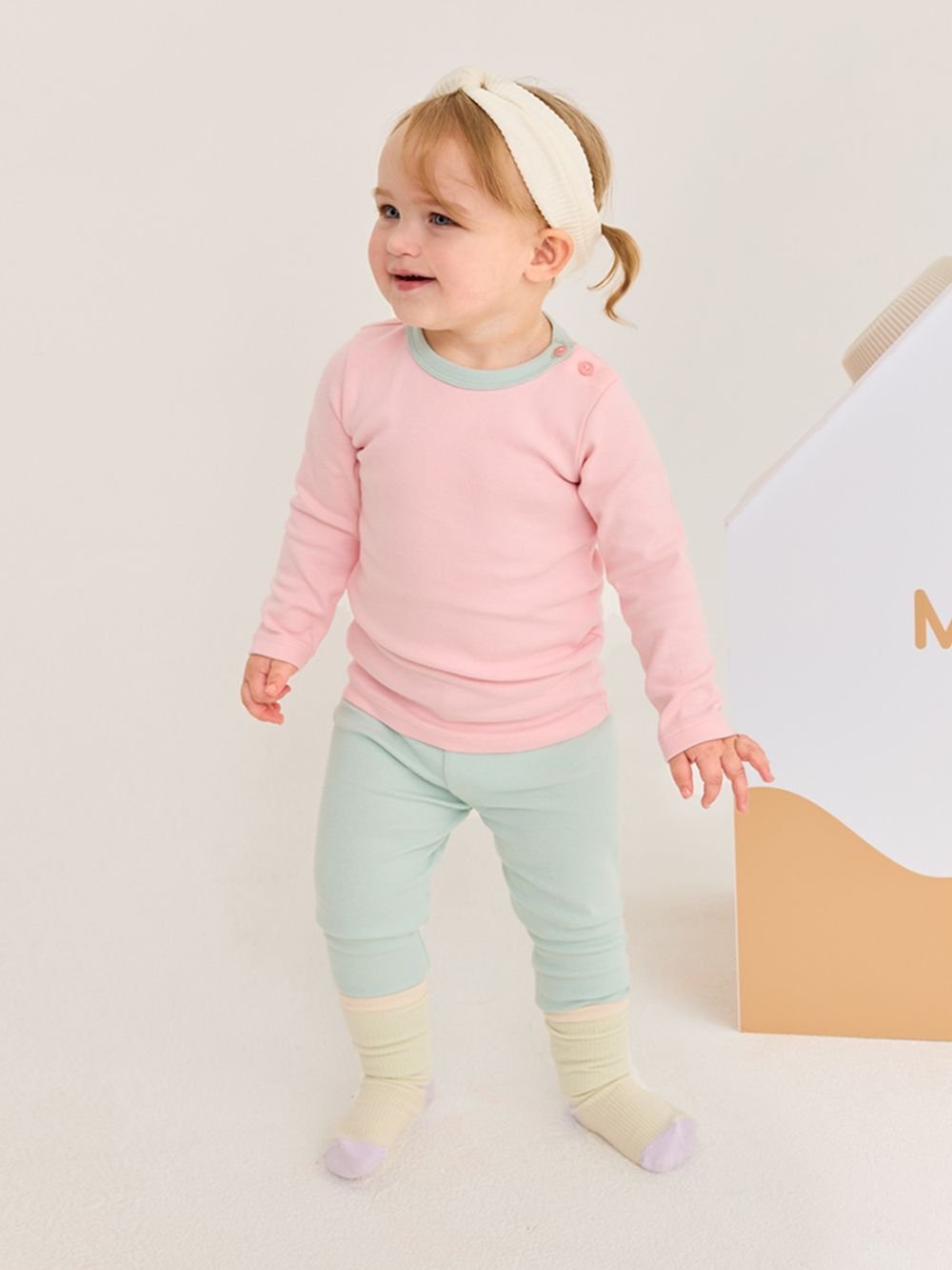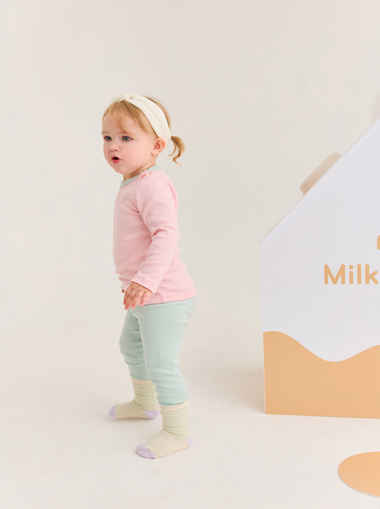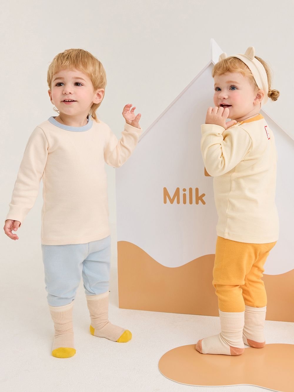🍂預訂 韓國直送🍂🇰🇷Milk Baby三色馬卡龍標籤修身防脹氣長袖家居服上下套裝