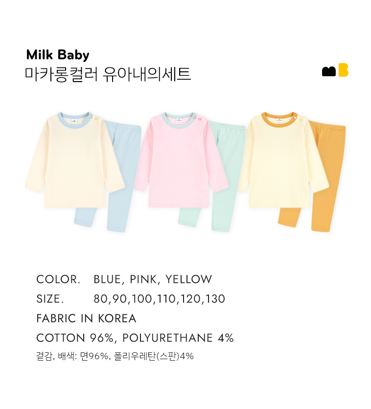 🍂預訂 韓國直送🍂🇰🇷Milk Baby三色馬卡龍標籤修身防脹氣長袖家居服上下套裝 🚚預計貨期:約14-21個工作日 (貨期有機會提早或延遲) 🎨顏色:藍色|黄色|粉紅 📐尺碼:80|90|100|110|120|130 外層布料:96% 棉,4% 聚氨酯(氨綸)/ 顏色:96% 棉,4% 聚氨酯 韓國布料 越南代工 風格資料 合身:常規 彈性:出色 厚度:薄 襯墊:不存在 穿著季節:春天、秋天、冬天 📦熱門貨品將跟據客人付款先後次序分配💞 🔺如產品出現斷貨將會全數退回🔺 ⚠️除非有列明 否則不包含其他服飾及配飾