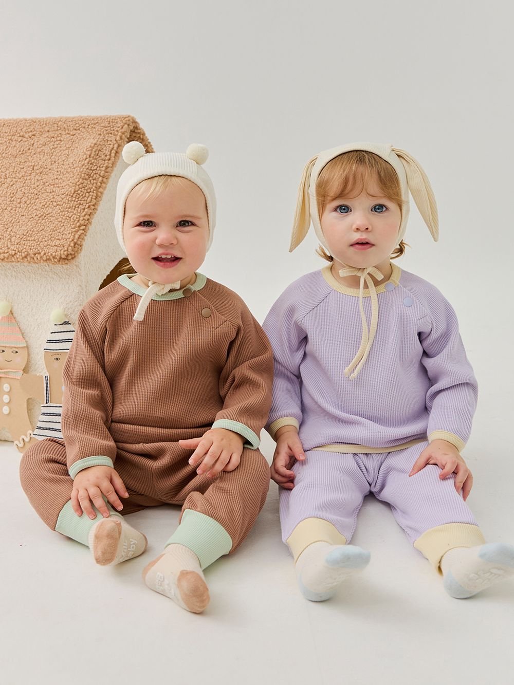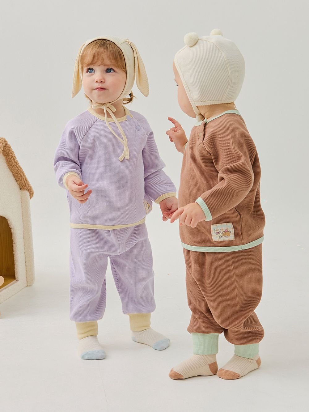 🍂預訂 韓國直送🍂🇰🇷Milk Baby兩色動物標籤華夫格寬鬆長袖包腹家居服上下套裝 🚚預計貨期:約14-21個工作日 (貨期有機會提早或延遲) 🎨顏色:棕色|紫色 📐尺碼:80|90|100|110|120|130 外層布料:100% 棉 / 裡料:95% 棉,5% 聚氨酯 韓國布料 中國代工 風格資料 合身:寬鬆 彈性:出色 厚度:通常 襯墊:不存在 穿著季節:春夏、秋天 📦熱門貨品將跟據客人付款先後次序分配💞 🔺如產品出現斷貨將會全數退回🔺 ⚠️除非有列明 否則不包含其他服飾及配飾